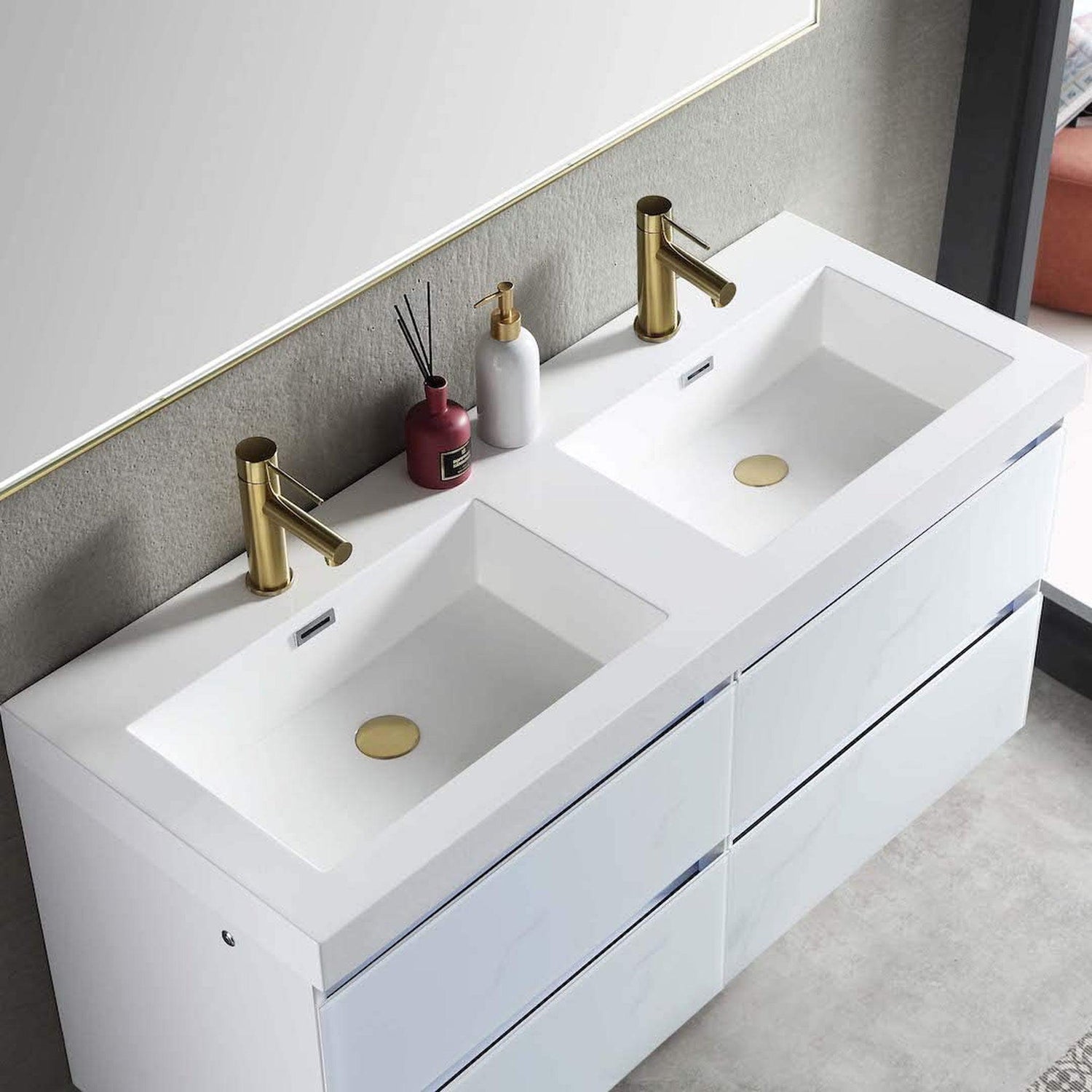Blossom Jena 48" 2-Drawer Calacatta White Wall-Mounted Vanity Set With Acrylic Top and Integrated Double Sinks