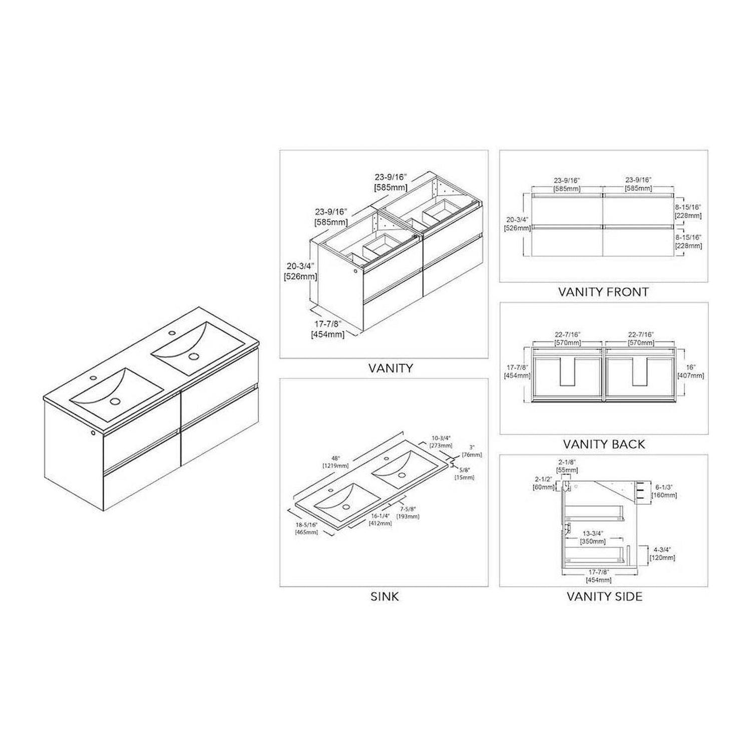Blossom Jena 48" 2-Drawer Calacatta White Wall-Mounted Vanity Set With Ceramic Top and Integrated Double Sinks