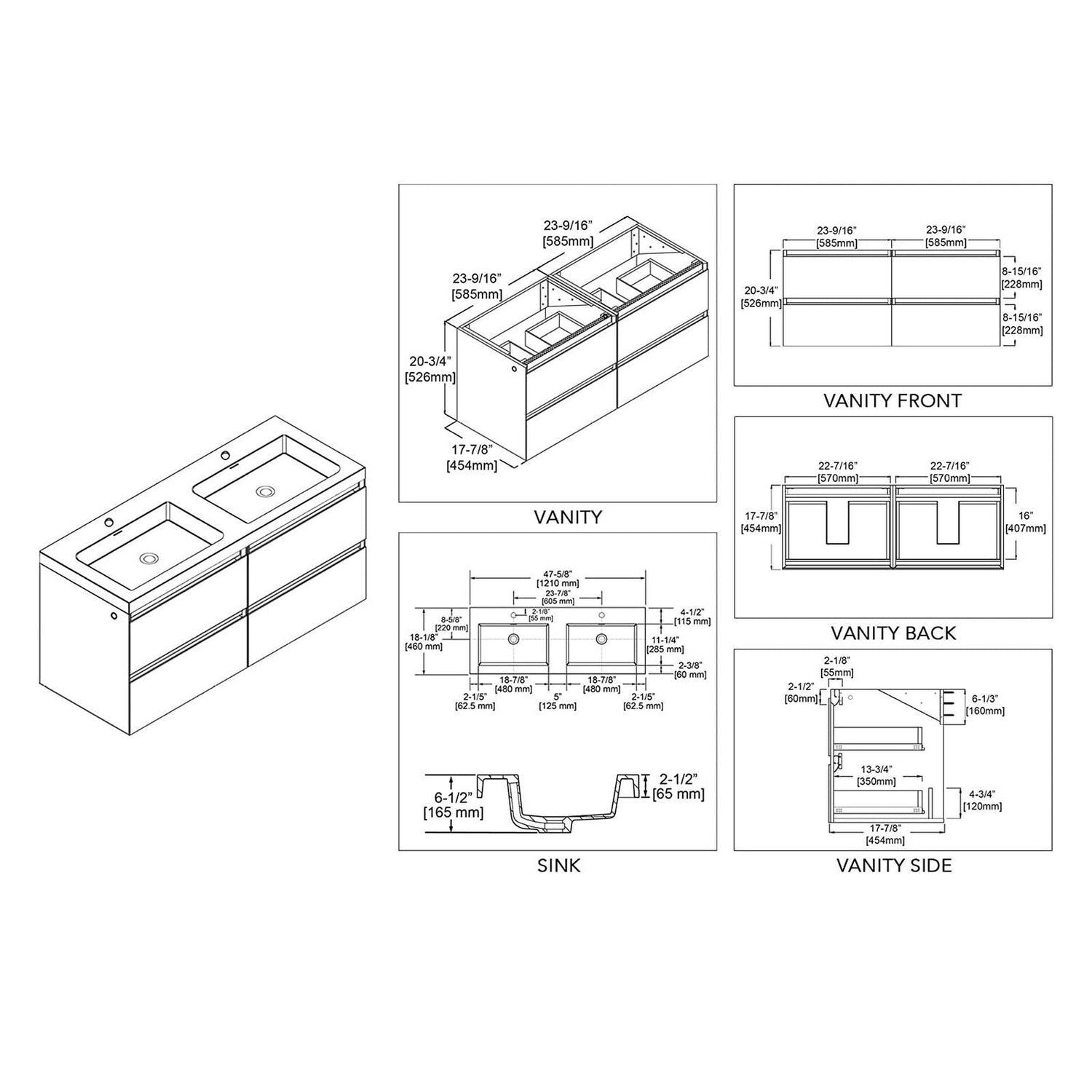 Blossom Jena 48" 2-Drawer Light Gray Wall-Mounted Vanity Set With Acrylic Top and Integrated Double Sinks