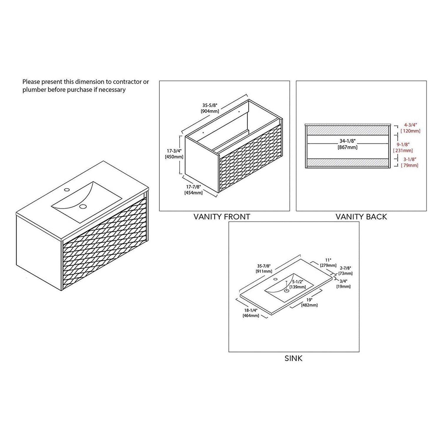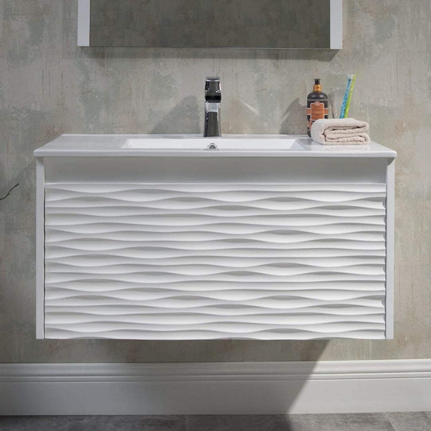 Blossom Paris 36" 1-Drawer White Wall-Mounted Vanity Set With Ceramic Top and Integrated Single Sink