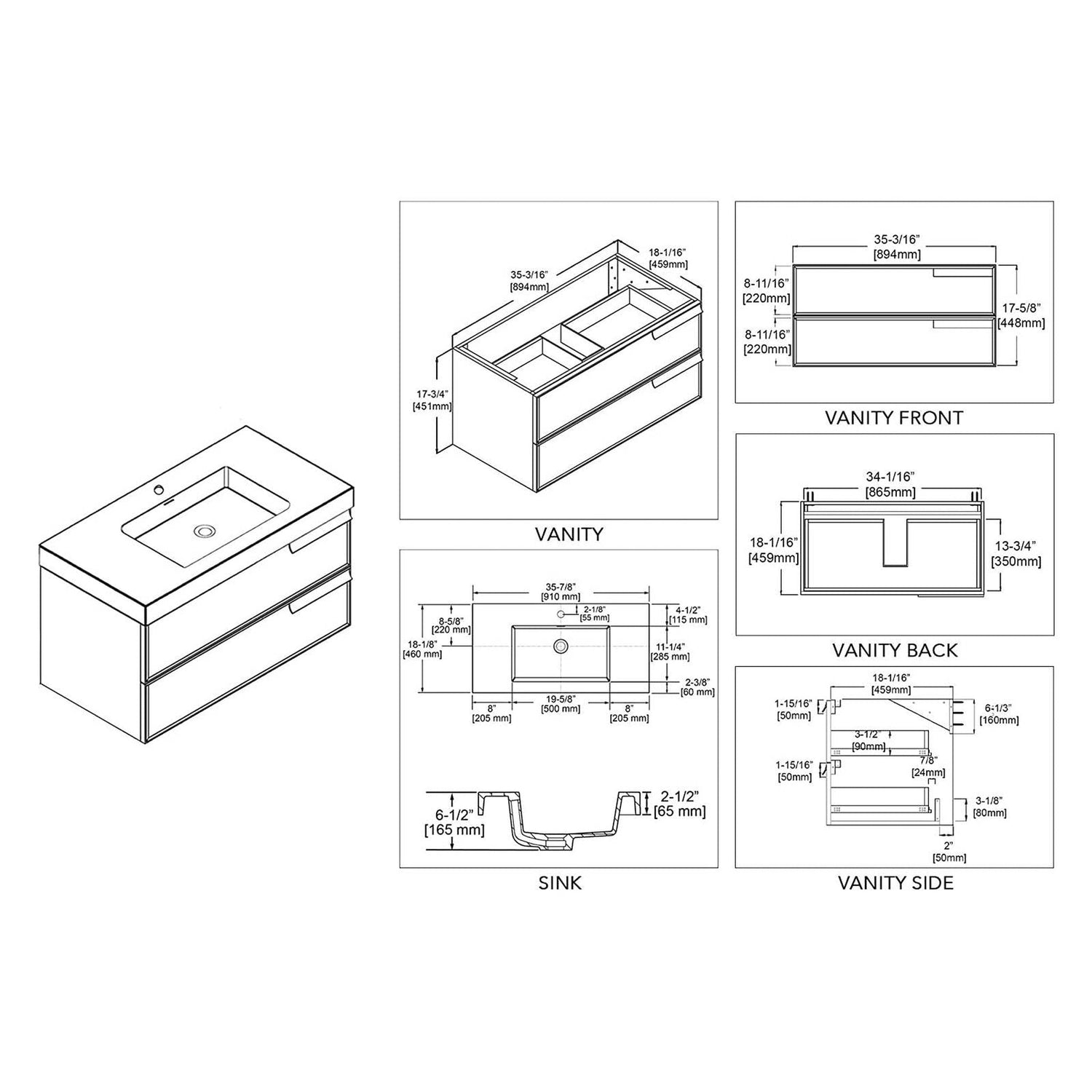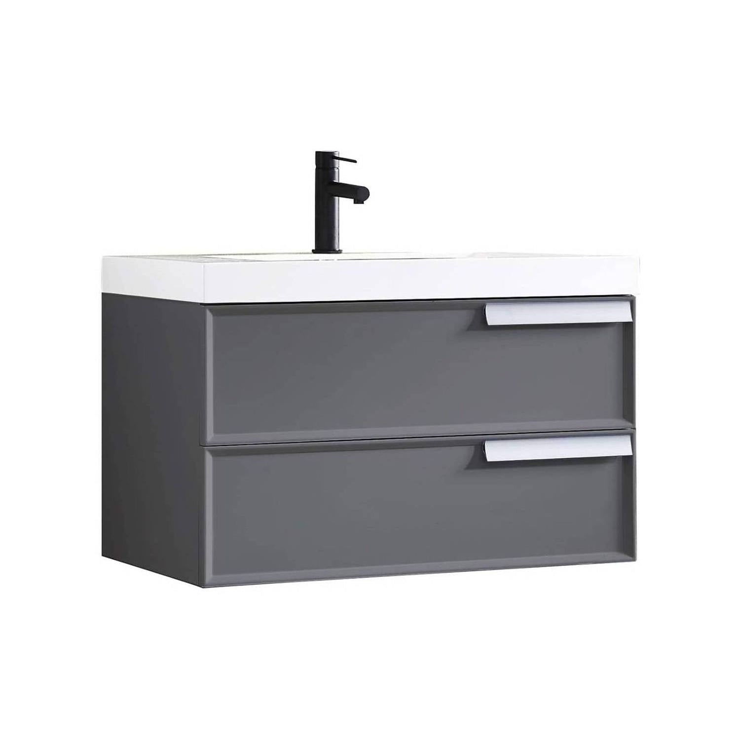 Blossom Sofia 36" 2-Drawer Matte Gray Wall-Mounted Vanity Set With Acrylic Top and Integrated Single Sink