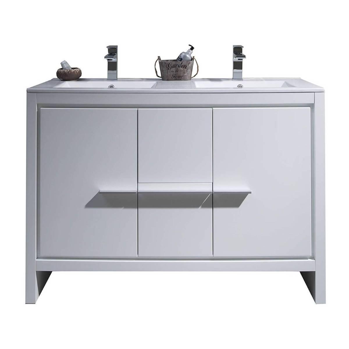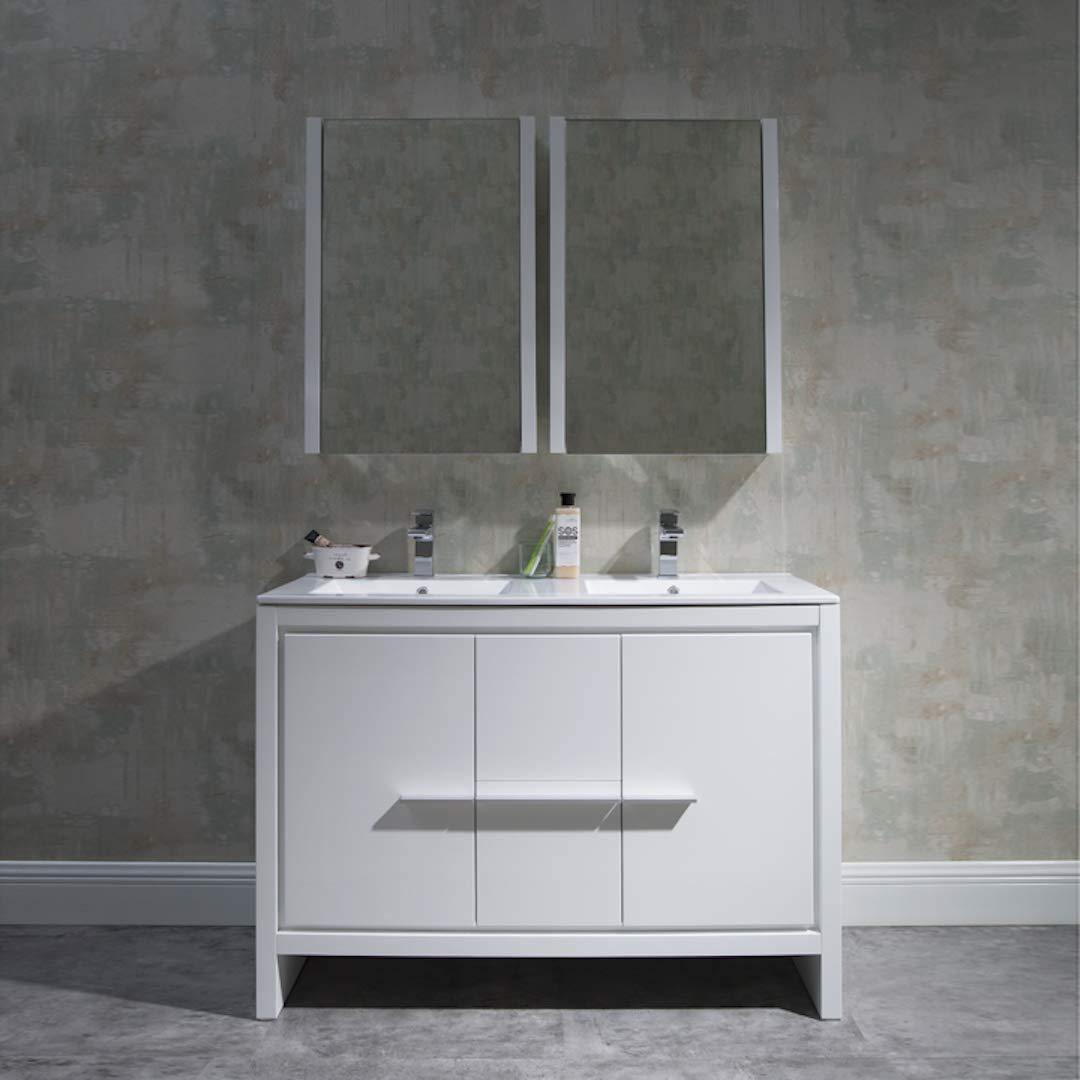 Blossom Milan 48" Double Vanity Set is built using heavy-duty grade ceramic material coated with glossy porcelain and a durable white or silver grey cabinet. It provides a smooth and elegant design also resistant to dent or distortion. Its classic drawer & modern European minimalist design offers a sleek appearance with spacious storage spaces. This mid-century Modern Bathroom Double Vanity Set thick top & side Panels with a flat door design provide extra strangeness. It is two times longer lasting and resistant to moisture and humidity.