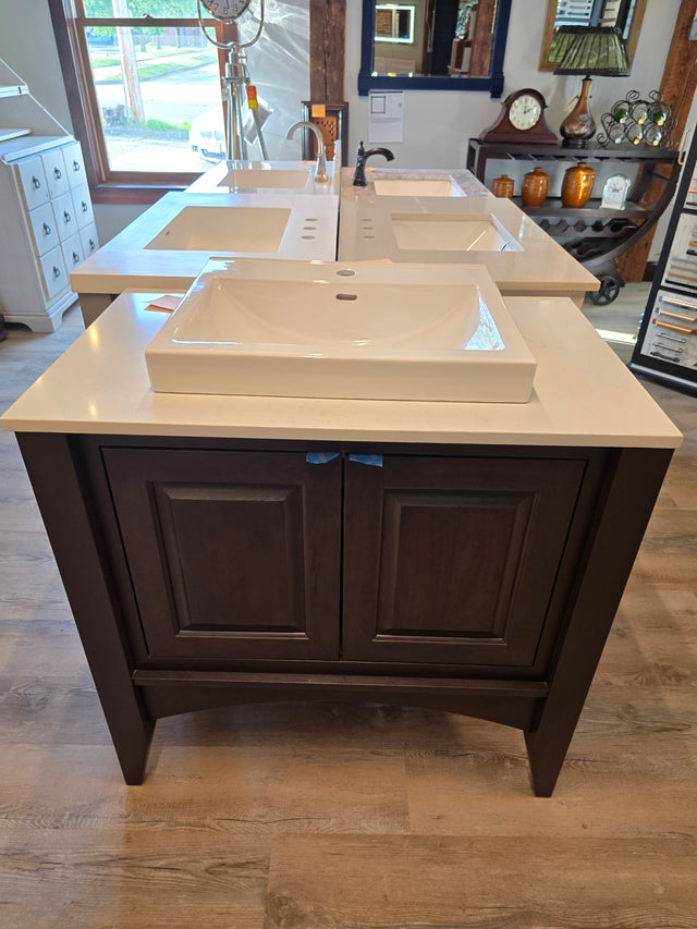 36" Solid Wood Vanity Set with Marble Top, China Sink, and a Brushed Nickel Faucet
