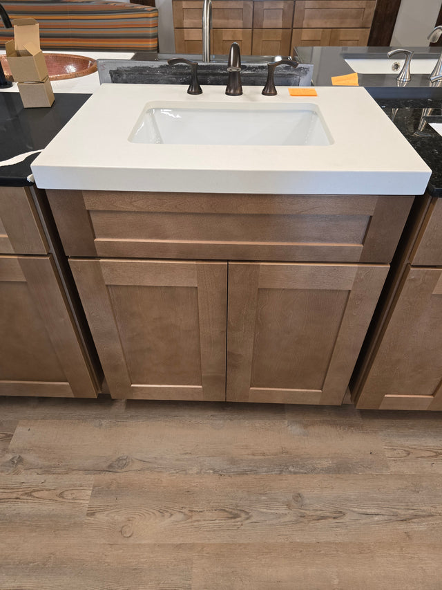 30" Cab-Tec Caramel Shaker Vanity Set with Fairmont Egg Quartz Top and Danze Tumbled Bronze Faucet