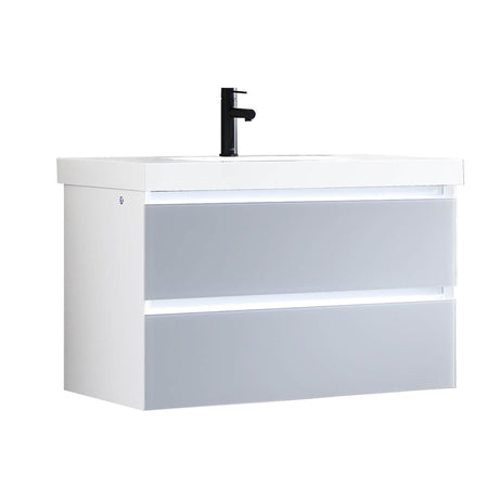 Blossom Jena 30" 2-Drawer Light Gray Wall-Mounted Vanity Set With Acryli...