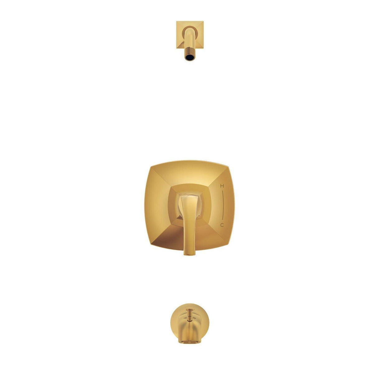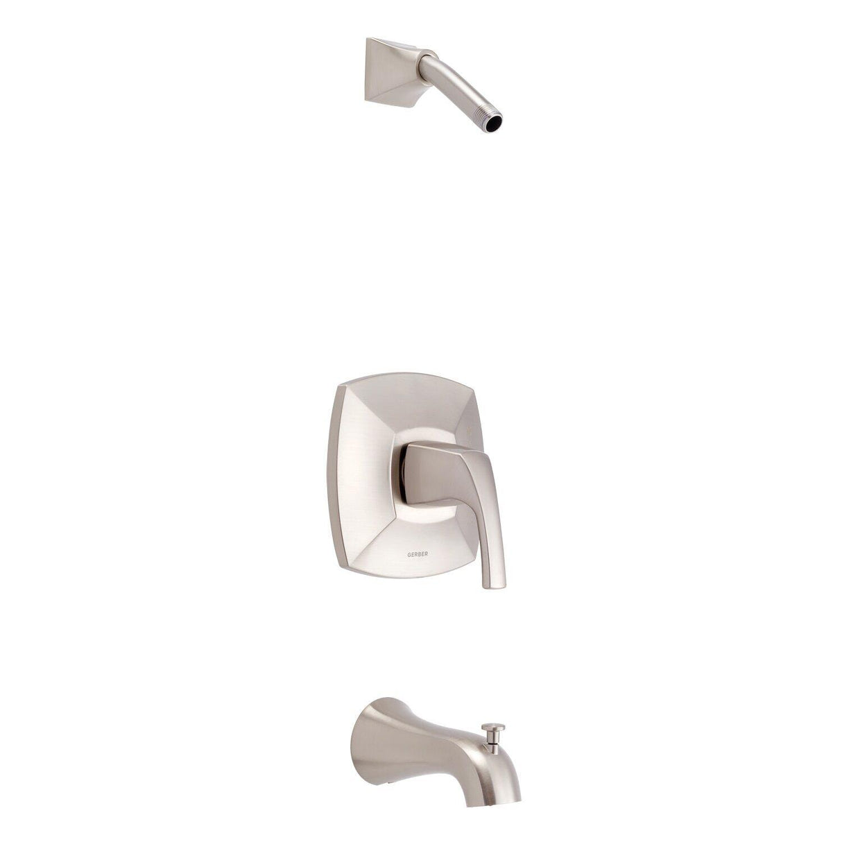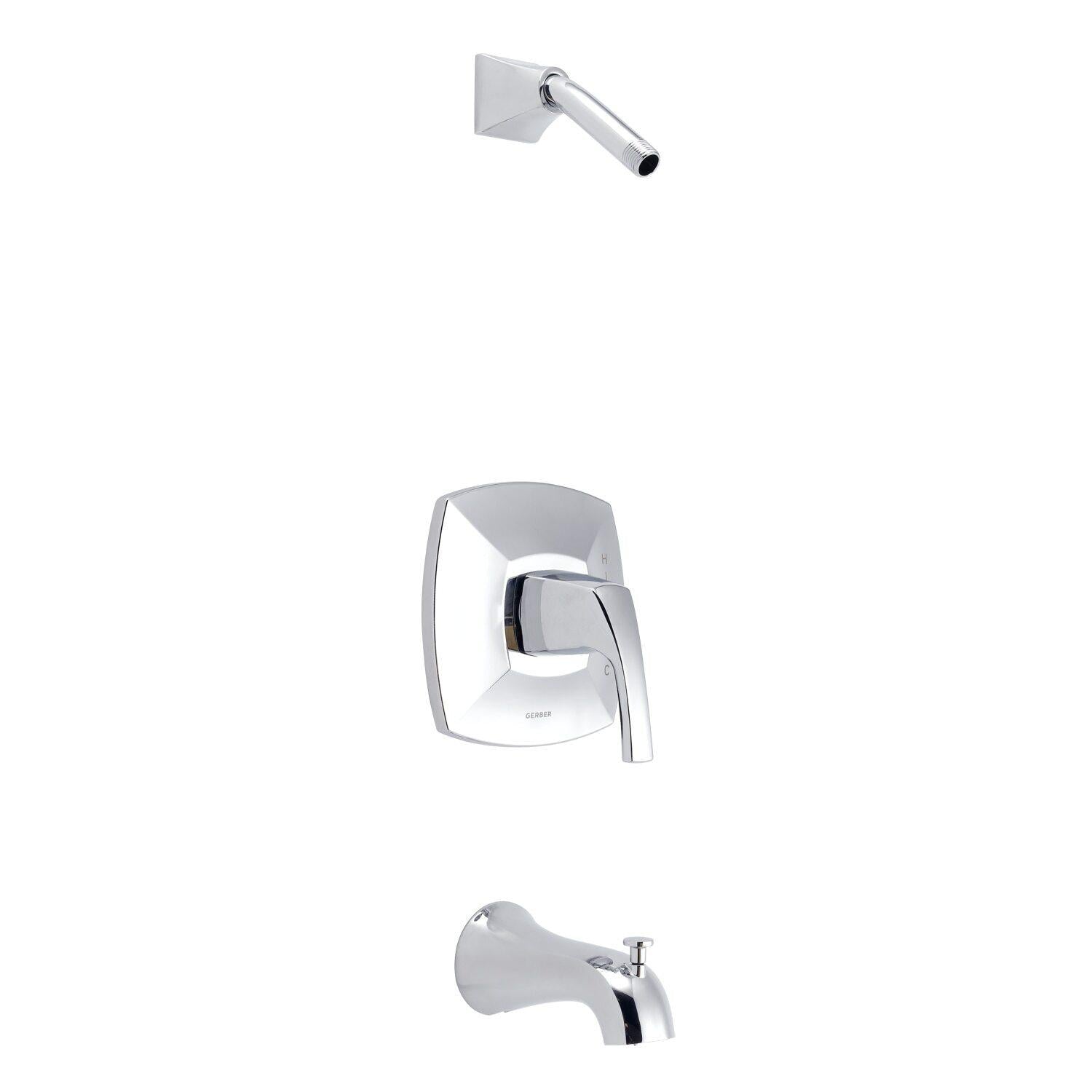 Product DescriptionCarefully curated with a streamlined aesthetic, the new Vaughn™ bath collection features a dynamic and sophisticated design. The arched curves and smooth planes of the faucet body contrast the angled faucet handle, giving the faucet an effortless beauty. Inspired by fluidity and movement, its transitional styling integrates seamlessly with any bathroom. The tub and shower trim kits are fully compatible with the powerful Gerber® Treysta valve, the latest innovation in valve technology.From the ManufacturerFor nearly 20 years, the kitchen and bath industry has known Danze as a leader in product design and beautiful styling. What industry professionals and homeowners may not have known is that Danze has a sister company, Gerber - an 85-year-old manufacturer of some of the highest performing, most reliable products on the market. To best meet the diverse and ever-changing needs of home products, Danze has transformed to be Danze by Gerber, a perfect blend of the handcrafted, trusted performance of Gerber on the inside and beautiful design on the outside. The Danze by Gerber product combination can be found in a range of kitchen and bath faucets, bath accessories and shower systems. A thoughtful balance of form and function. Inspired, beautiful design on the outside. Handcrafted, trusted performance on the inside. A combination that results in true value and commitment. You can call it a breath of fresh air. We call it Danze by Gerber. Product Information Product Overview Diverter Location: Diverter on Tub SpoutShower Arm Length & Material: 6 Brass Shower ArmValve Type: Pressure BalanceBrand: Gerber Features Screw-Less Design for Fast and Easy InstallationCartridge Type: Includes Treysta Ceramic Disc Pressure Balance CartridgeIntegral Check Valve: Integral Check Valves in Cartridge Body to Prevent Cross-FlowWarranty: Limited lifetime Description The new Vaughn Collection trim includes the new Gerber Treysta Ceramic Disc Pressure Balance Cartridge. A Gerber Treysta rough-in valve body is required and is sold separately. Components Sold Separately Required: For Use with Gerber Treysta Rough-In Valves G00gs50 or G00gs52 SeriesSold Separately Optional: Finish Matched Deep Wall Extension Kit D113001 and Shallow Wall Extension Kit Ga663b11