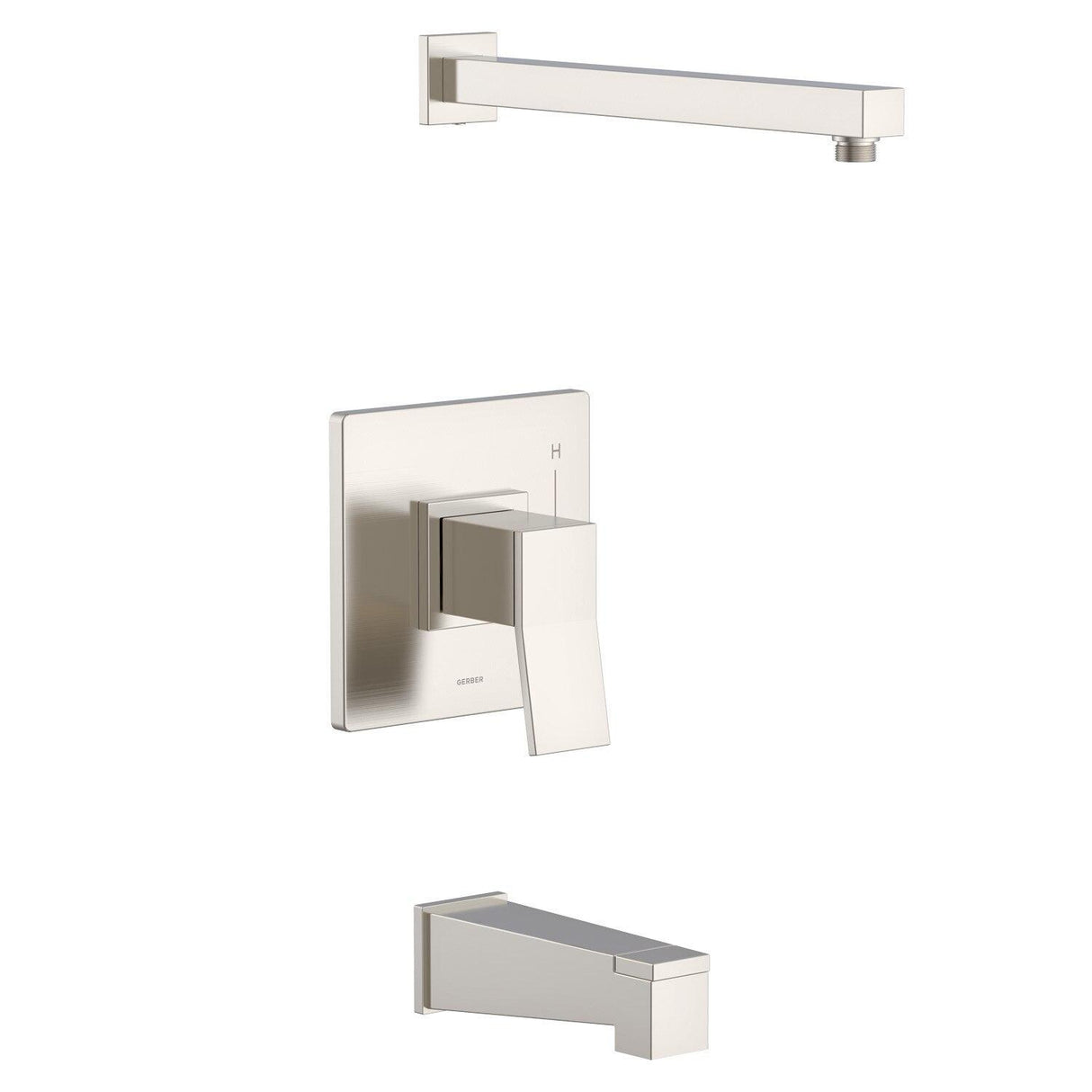 Gerber Plumbing has been manufacturing premium plumbing accessories from shower heads to faucets to china fixtures since 2001. Not only providing necessities, the products include a variety of decorative faucets and bath accessories. Designed with comfort, durability, and style in mind, there is no question that this should be your choice when it comes to modern plumbing. Product Information Product Overview Diverter Location: Diverter on Tub SpoutShower Arm Length & Material: 12 1/2 Shower ArmValve Type: Pressure BalanceBrand: Gerber Features Screw-Less Design for Fast and Easy InstallationCartridge Type: Includes Treysta Ceramic Disc Pressure Balance CartridgeIntegral Check Valve: Integral Check Valves in Cartridge Body to Prevent Cross-FlowWarranty: Limited lifetime Components Sold Separately Required: For Use with Gerber Treysta Rough-In Valves G00gs50 or G00gs52 SeriesSold Separately Optional: Deep Wall Extension Kit D113001 and Shallow Wall Extension Kit Ga663b11
