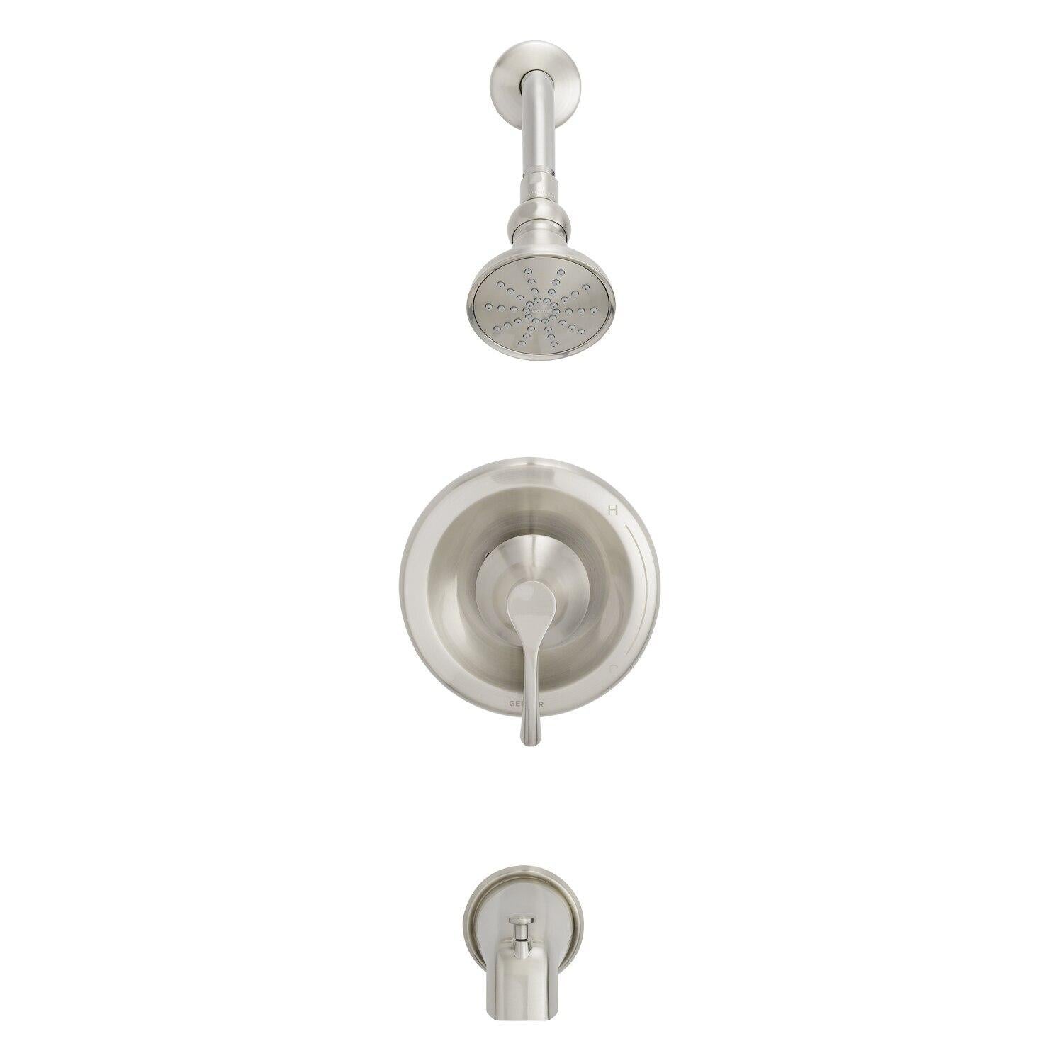 Product Information Product Overview Diverter Location: Diverter on Tub SpoutFlow Rate: 1.75gpm Max Flow Rate @ 80 psiShower Arm Length & Material: 6 Metal Shower ArmSpray/Stream Function: Single Function Offers a Powerful SprayValve Type: Pressure BalanceBrand: Gerber Features Certified under the Danze brandCartridge Type: Includes Treysta Ceramic Disc Pressure Balance CartridgeEasy Clean Nozzles: Features Easy Clean Soft-Touch NozzlesIntegral Check Valve: Integral Check Valves in Cartridge Body to Prevent Cross-FlowPressure Manifold: Features Pressure Manifold technology to ensure wide coverage and a powerful sprayWarranty: Limited lifetime Description Antioch trim kit now includes the new Gerber Treysta Ceramic Disc Pressure Balance Cartridge. A Gerber Treysta rough-in valve body is required and is sold separately. Components Showerhead: Features Mono Round Single Function ShowerheadSold Separately Required: For Use with Gerber Treysta Rough-In Valves G00gs50 or G00gs52 SeriesSold Separately Optional: For Use with Gerber Treysta Rough-In Valves G00gs50 or G00gs52 Series