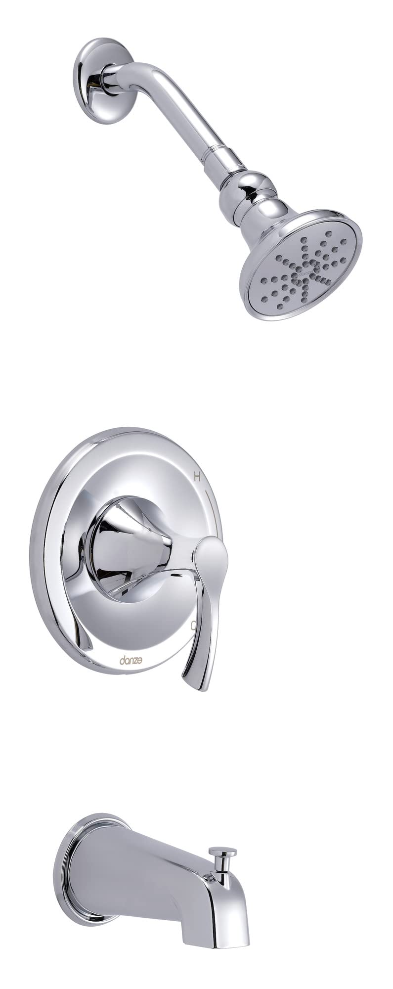 DANZE Antioch 1H Tub & Shower Trim Kit with Diverter on Spout & Treysta Cartridge 1. 75gpm, Chrome Product Information Product Overview Diverter Location: Diverter on Tub SpoutFlow Rate: 1.75gpm Max Flow Rate @ 80 psiShower Arm Length & Material: 6 Metal Shower ArmSpray/Stream Function: Single Function Offers a Powerful SprayValve Type: Pressure BalanceBrand: Gerber Features Certified under the Danze brandCartridge Type: Includes Treysta Ceramic Disc Pressure Balance CartridgeEasy Clean Nozzles: Features Easy Clean Soft-Touch NozzlesIntegral Check Valve: Integral Check Valves in Cartridge Body to Prevent Cross-FlowPressure Manifold: Features Pressure Manifold technology to ensure wide coverage and a powerful sprayWarranty: Limited lifetime Description Antioch trim kit now includes the new Gerber Treysta Ceramic Disc Pressure Balance Cartridge. A Gerber Treysta rough-in valve body is required and is sold separately. Components Showerhead: Features Mono Round Single Function ShowerheadSold Separately Required: For Use with Gerber Treysta Rough-In Valves G00gs50 or G00gs52 SeriesSold Separately Optional: For Use with Gerber Treysta Rough-In Valves G00gs50 or G00gs52 Series