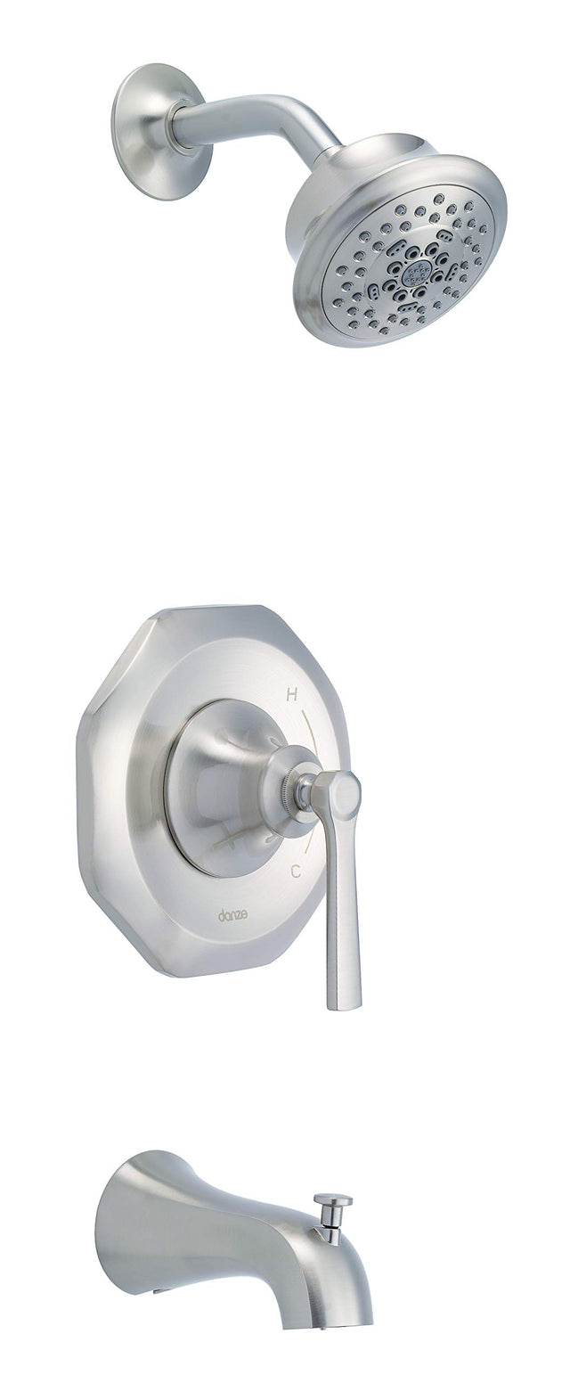 Product DescriptionThoughtfully crafted with an inspired aesthetic, the new Draper bath collection features vintage coin-edge details for a modern take on a classic design. The soft-industrial influence gives the faucet a refined elegance, juxtaposing the curved lines of the faucet bodies against geometric details in the faucet handles. Its traditional elegance fits effortlessly with any bathroom. The tub and shower trim kits are fully compatible with the powerful Gerber Treysta valve, the latest innovation in valve technology.From the ManufacturerFor nearly 20 years, the kitchen and bath industry has known Danze as a leader in product design and beautiful styling. What industry professionals and homeowners may not have known is that Danze has a sister company, Gerber - an 85-year-old manufacturer of some of the highest performing, most reliable products on the market. To best meet the diverse and ever-changing needs of home products, Danze has transformed to be Danze by Gerber, a perfect blend of the handcrafted, trusted performance of Gerber on the inside and beautiful design on the outside. The Danze by Gerber product combination can be found in a range of kitchen and bath faucets, bath accessories and shower systems. A thoughtful balance of form and function. Inspired, beautiful design on the outside. Handcrafted, trusted performance on the inside. A combination that results in true value and commitment. You can call it a breath of fresh air. We call it Danze by Gerber. Product Information Product Overview Diverter Location: Diverter on Tub SpoutFlow Rate: 1.75gpm Max Flow Rate @ 80 psiShower Arm Length & Material: 6 Metal Shower ArmSpray/Stream Function: 5 Functions: Wide Aeration Centerjet Massage and Wide + CenterjetValve Type: Pressure BalanceBrand: Gerber Features Air Injection Technology: Features Air Injection technology which optimizes water intensity even at low pressuresCartridge Type: Includes Treysta Ceramic Disc Pressure Balance CartridgeDual Valve Technology: Features Dual Valve technology which minimizes water pressure loss as setting changesEasy Clean Nozzles: Features Easy Clean Soft-Touch NozzlesEasy-Glide Selector Ring: Features Easy-Glide selector ring for effortless smooth adjustmentIntegral Check Valve: Integral Check Valves in Cartridge Body to Prevent Cross-FlowWarranty: Limited lifetime Description The new Draper Collection trim kit includes the new Gerber Treysta Ceramic Disc Pressure Balance Cartridge. A Gerber Treysta rough-in valve body is required and is sold separately. Components Showerhead: Features Surge 5-Function ShowerheadSold Separately Required: For Use with Gerber Treysta Rough-In Valves G00gs50 or G00gs52 SeriesSold Separately Optional: For Use with Gerber Treysta Rough-In Valves G00gs50 or G00gs52 Series
