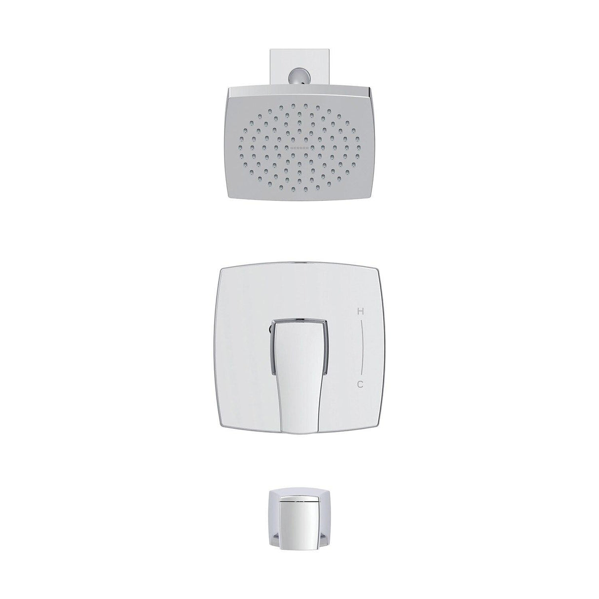 Product Information Product Overview Diverter Location: Diverter on Tub SpoutFlow Rate: 1.75gpm @ 80psiShower Arm Length & Material: Metal shower armSpray/Stream Function: Single Function Showerhead Delivers a Powerful SprayValve Type: Pressure BalanceBrand: Gerber Features Showerhead has easy-to-maneuver ball joint for spray direction flexibilityEscutcheon with Lever Handle5 1/2 Tub Spout with DiverterCartridge Type: Includes Treysta Ceramic Disc Pressure Balance CartridgeEasy Clean Nozzles: Features Easy Clean Soft-Touch NozzlesIntegral Check Valve: Integral Check Valves in Cartridge Body to Prevent Cross-FlowWarranty: Limited lifetime Description Subtle yet striking the Tribune Tub & Shower Trim Kit with Diverter on Tub Spout will elevate the look of any bathroom. The kit includes a single-function showerhead trim handle and tub spout with diverter to offer a complete shower solution. With straight modern lines and soft edges the Tribune collection sets the stage for style. Square design is accented with minimal detailing to offer a simple yet elegant appearance. The kit also includes the Treysta ceramic disc pressure balance cartridge that is powered by the Treysta rough-in valve sold separately. Offering a full complement of coordinated sink shower and tub faucets and trim let the Tribune s softly contoured square forms and stunning finish options elevate your bathroom to a modern level. Components Cartridge Included: YesShowerhead: Features Tribune 6 Single Function ShowerheadSold Separately Required: For Use with Gerber Treysta Rough-In Valves G00gs50 or G00gs52 SeriesSold Separately Optional: Deep Wall Extension Kit D113001 and Shallow Wall Extension Kit Ga663b11