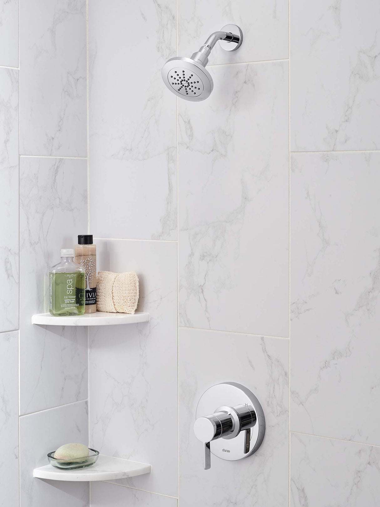Gerber Plumbing has been manufacturing premium plumbing accessories from shower heads to faucets to china fixtures since 2001. Not only providing necessities, the products include a variety of decorative faucets and bath accessories. Designed with comfort, durability, and style in mind, there is no question that this should be your choice when it comes to modern plumbing. Product Information Product Overview Diverter Location: Diverter on Tub SpoutFlow Rate: 1.75gpm Max Flow Rate @ 80 psiShower Arm Length & Material: 6 Metal Shower ArmSpray/Stream Function: Single function offers a steady gentle streamValve Type: Pressure BalanceBrand: Gerber Features Cartridge Type: Includes Treysta Ceramic Disc Pressure Balance CartridgeEasy Clean Nozzles: Features Easy Clean Soft-Touch NozzlesIntegral Check Valve: Integral Check Valves in Cartridge Body to Prevent Cross-FlowPressure Manifold: Features Pressure Manifold technology to ensure wide coverage and a powerful sprayWarranty: Limited lifetime Description Amalfi trim kit now includes the new Gerber Treysta Ceramic Disc Pressure Balance Cartridge. A Gerber Treysta rough-in valve body is required and is sold separately. Components Showerhead: Features Mono Chic 4 1/2 Single Function ShowerheadSold Separately Required: For Use with Gerber Treysta Rough-In Valves G00gs50 or G00gs52 SeriesSold Separately Optional: For Use with Gerber Treysta Rough-In Valves G00gs50 or G00gs52 Series