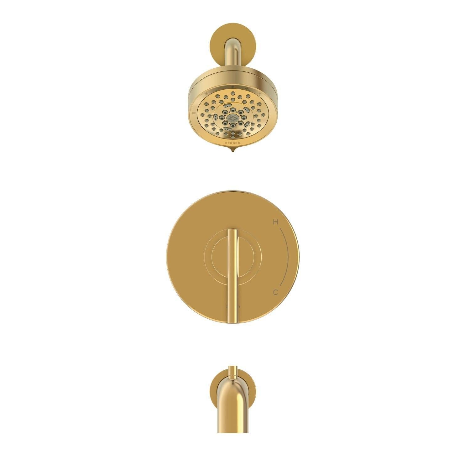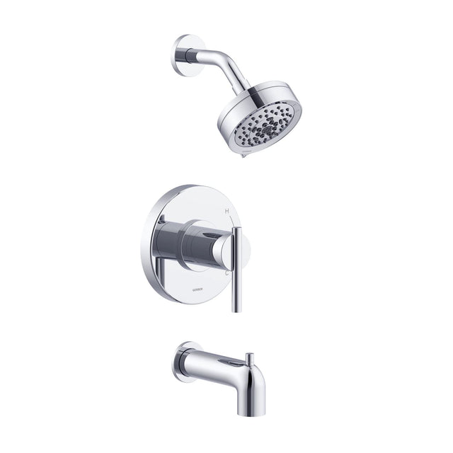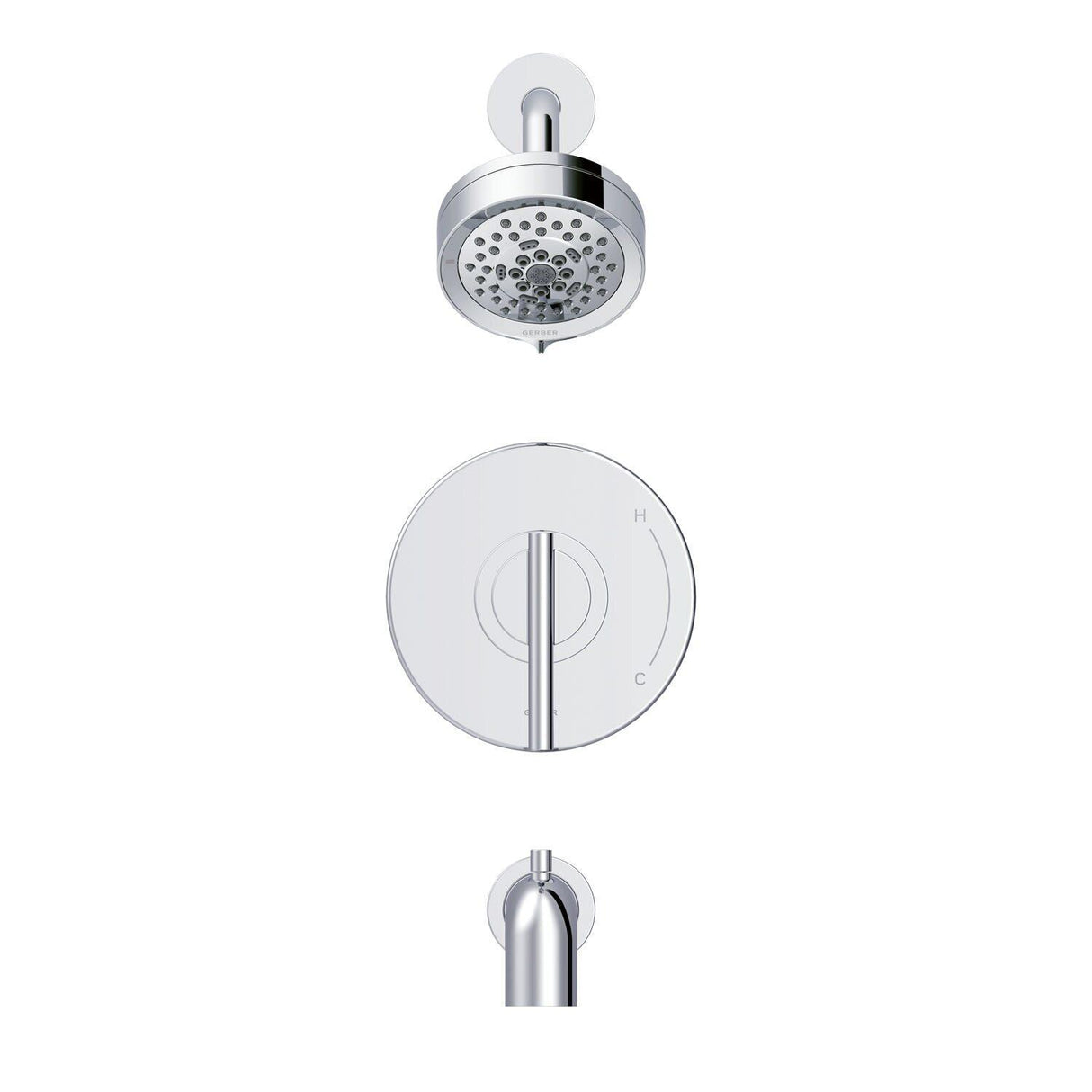 DescriptionThe Parma Tub & Shower Trim Kit with Diverter on Tub Spout includes a 5-function showerhead, trim handle, and tub spout with diverter providing a complete shower solution and eliminating the need for a separate diverter valve and trim. Streamlined and sleek, the Parma bath collection combines understated style with a contemporary flair to accent a range of bath settings. Parmaโ€™s minimalist cylindrical forms are backed with simple circles to combine practical function with a stunning aesthetic. This theme is carried through a full lineup of complementary products including sink faucets. This kit also includes Gerber Treysta Ceramic Disc Pressure Balance Cartridge to expedite installation. A Gerber Treysta rough-in valve body is required and is sold separately. Precision engineered for long-lasting functionality and peak performance, this Parma trim kit combines fabulous form with fine-tuned function. Product Information Product Overview Diverter Location: Diverter on Tub SpoutFlow Rate: 1.75gpm @ 80psiShower Arm Length & Material: 6 Metal Shower ArmSpray/Stream Function: 5 Functions: Wide Aeration Centerjet Massage and Wide + CenterjetValve Type: Pressure BalanceBrand: Gerber Features Cartridge Type: Includes Treysta Ceramic Disc Pressure Balance CartridgeDual Valve Technology: Features Dual Valve technology which minimizes water pressure loss as setting changesEasy Clean Nozzles: Features Easy Clean Soft-Touch NozzlesEasy-Glide Selector Ring: Features Easy-Glide selector ring for effortless smooth adjustmentIntegral Check Valve: Integral Check Valves in Cartridge Body to Prevent Cross-FlowWarranty: Limited lifetime Description The Parma Tub & Shower Trim Kit with Diverter on Tub Spout includes a 5-function showerhead trim handle and tub spout with diverter providing a complete shower solution. Streamlined and sleek the Parma bath collection combines understated style with a contemporary flair to accent a range of bath settings. Parma s minimalist cylindrical forms are backed with simple circles to combine practical function with a stunning aesthetic. This theme is carried through a full lineup of complementary products including sink faucets. This kit also includes Gerber Treysta Ceramic Disc Pressure Balance Cartridge to expedite installation. A Gerber Treysta rough-in valve body is required and is sold separately. Precision engineered for long-lasting functionality and peak performance this Parma trim kit combines fabulous form with fine-tuned function. You can choose Gerber faucets with confidence knowing that they are backed by a Lifetime Limited Warranty for defects. Components Cartridge Included: YesShowerhead: Features Parma 5-Function ShowerheadSold Separately Required: For Use with Gerber Treysta Rough-In Valves G00gs50 or G00gs52 SeriesSold Separately Optional: Deep Wall Extension Kit D113001 and Shallow Wall Extension Kit Ga663b11