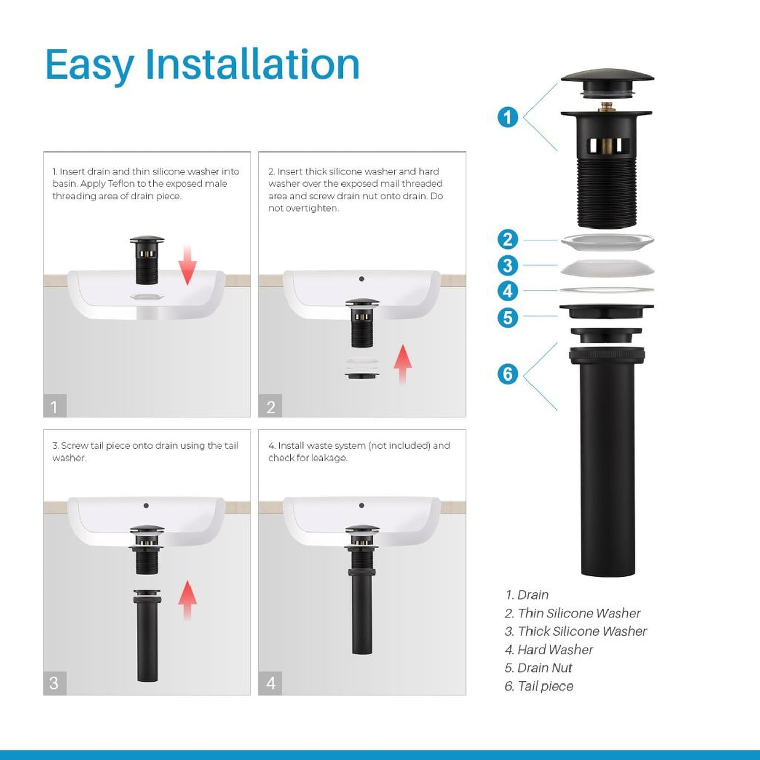 Blossom 1.25" Matte Black Brass Pop-Up Sink Drain With Overflow
