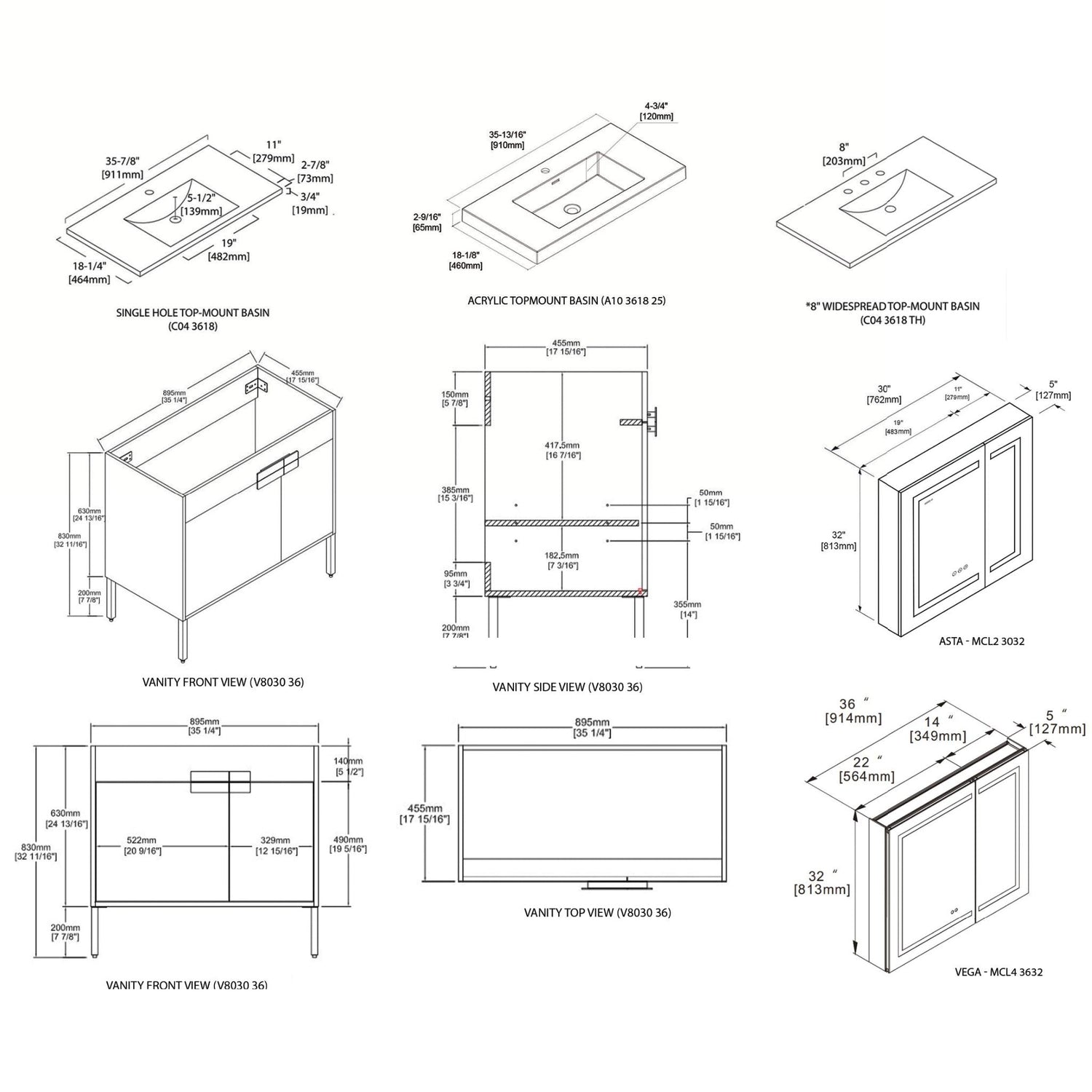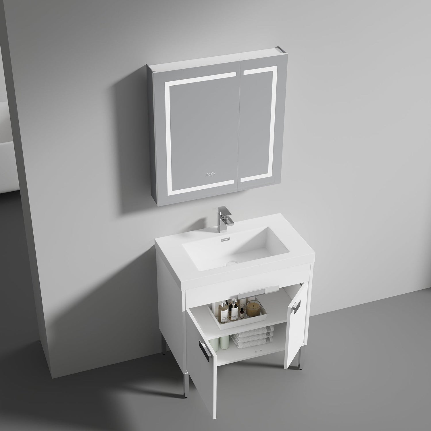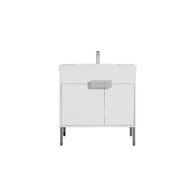 Blossom Bari 36" 2-Door White Freestanding Single Vanity Base With Adjustable Shelf, Chrome Handles & Legs