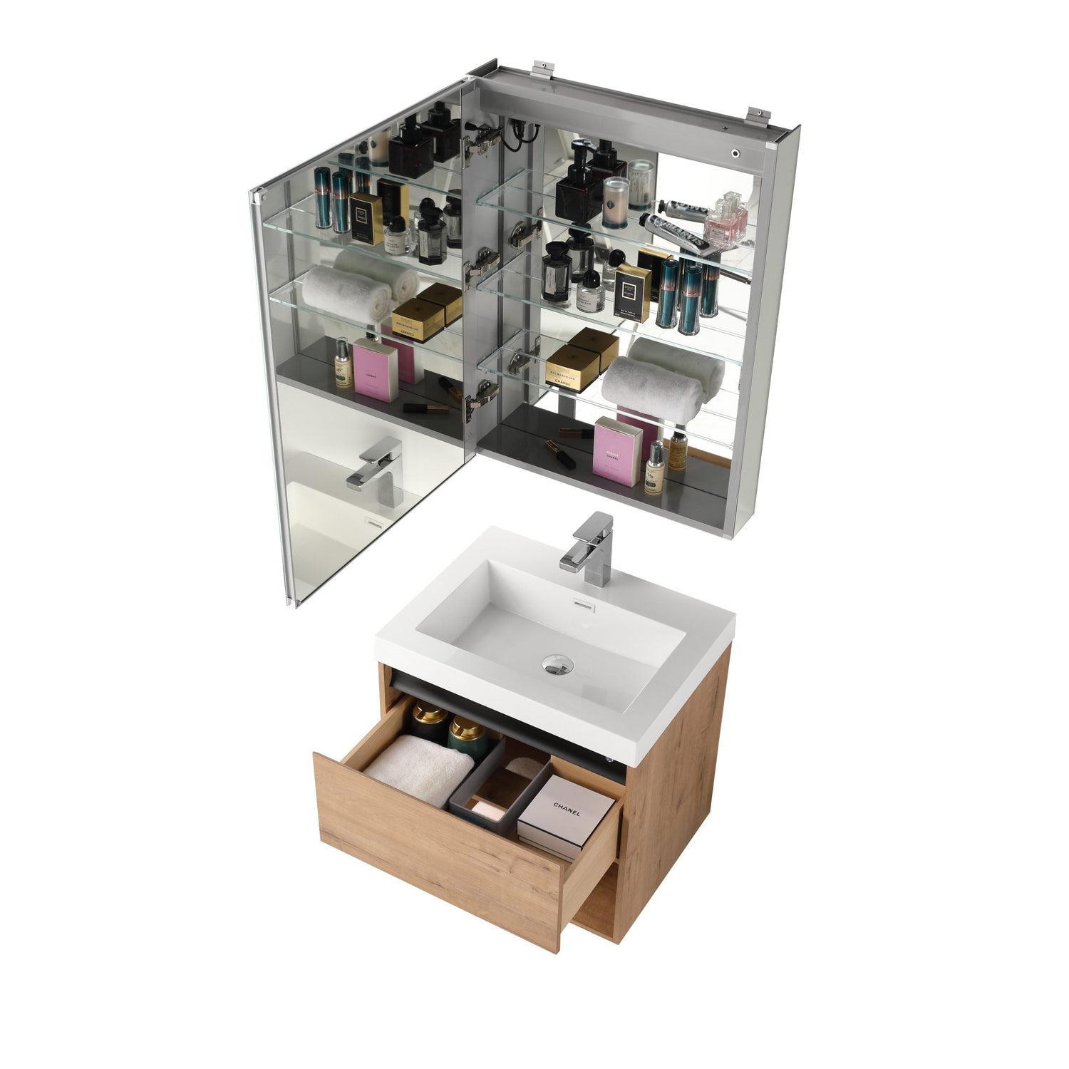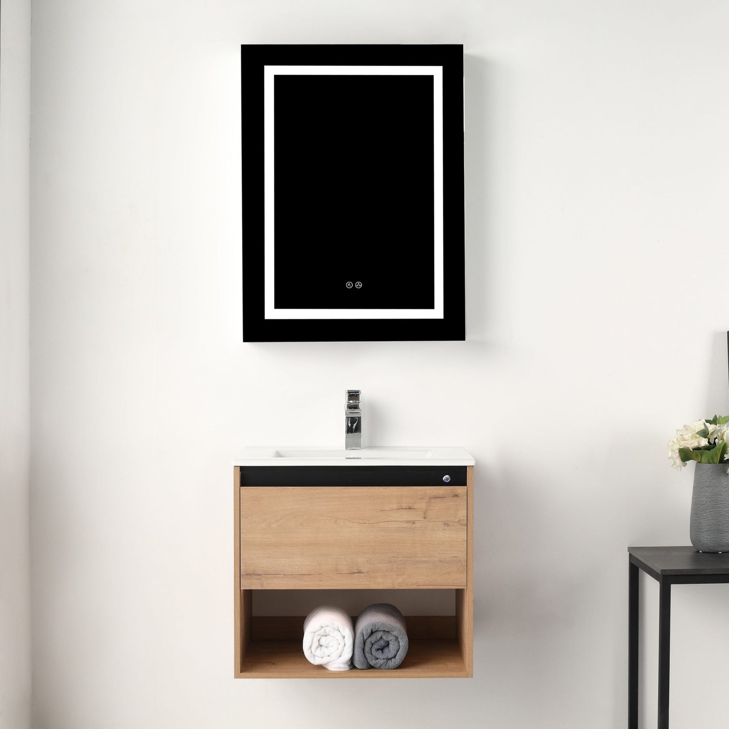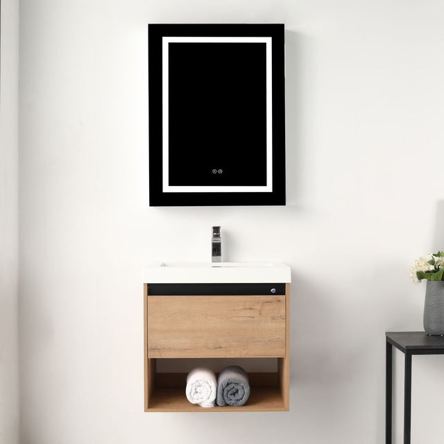 Blossom Bergen 24" Classic Oak Vanity With Dual LED Lights and Open Shelf