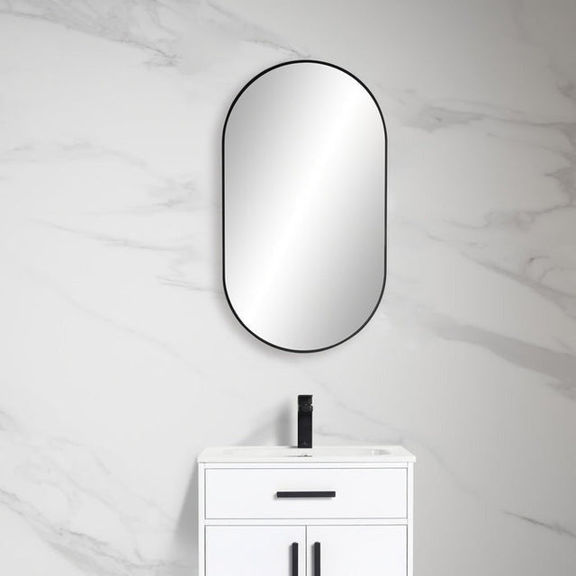 Blossom FM4 20" x 36" Matte Black Oval Sleek Durable Metal Framed Mirror