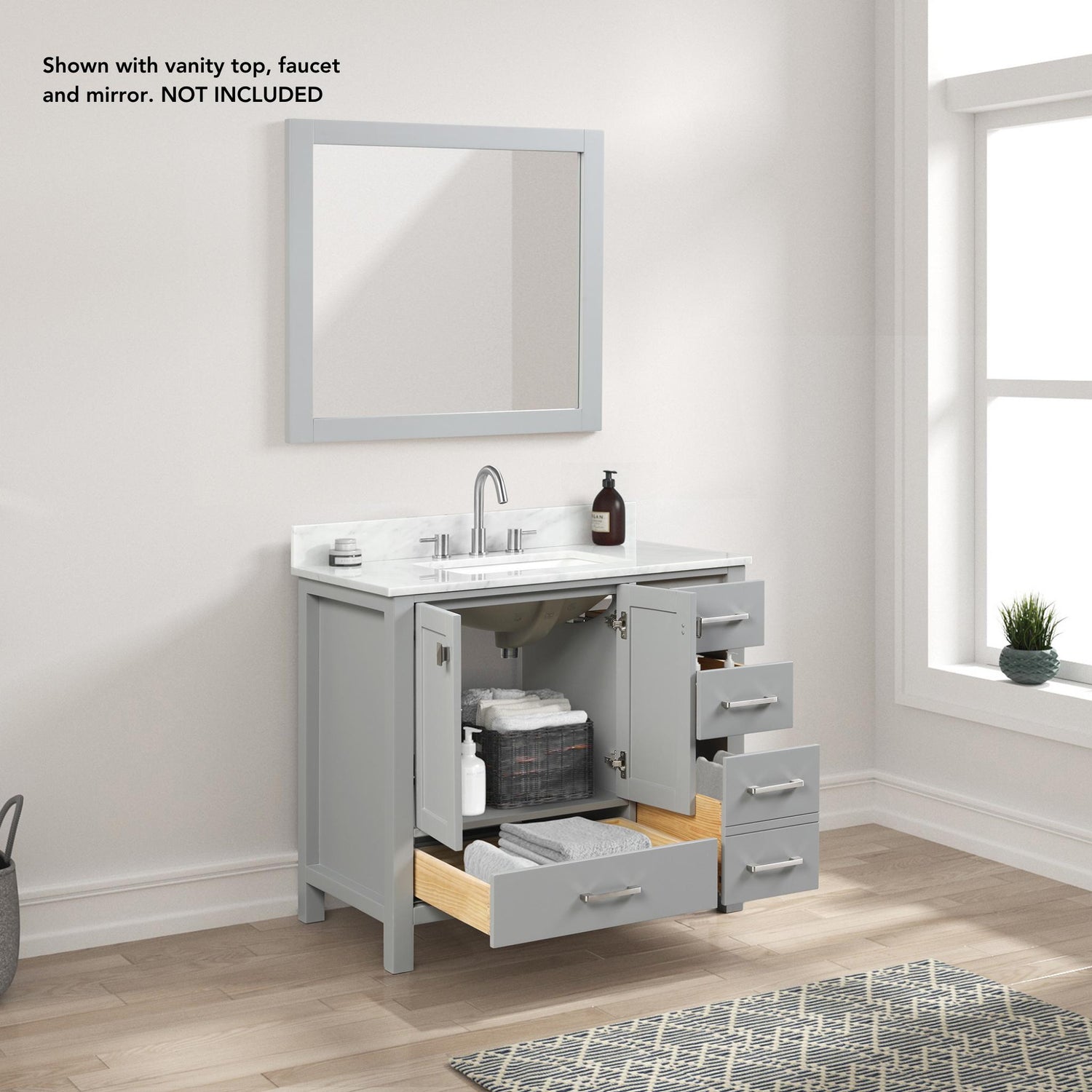 Blossom Geneva 36" 2-Door 5-Drawer Metal Gray Freestanding Solid Wood Single Vanity Base