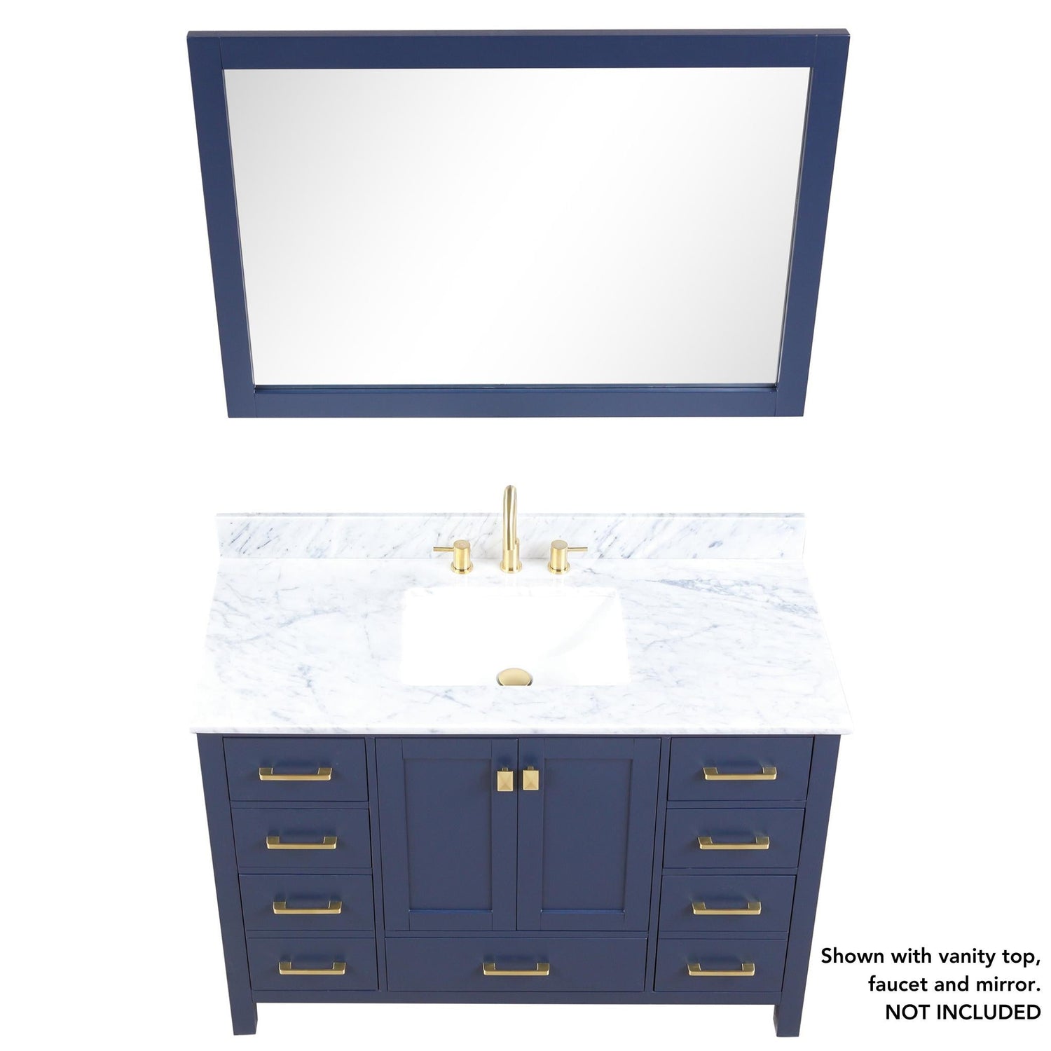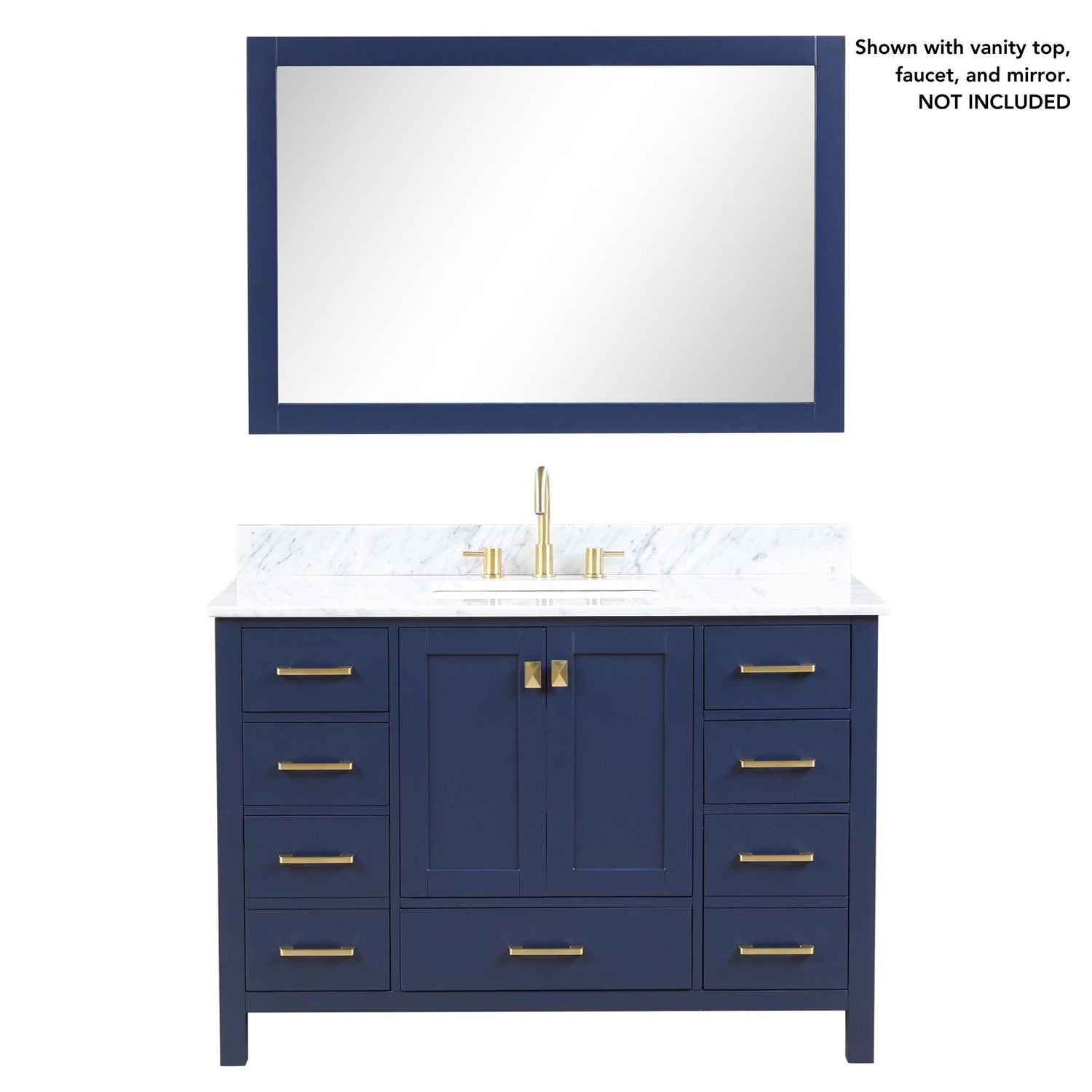 Blossom Geneva 48" 2-Door 9-Drawer Navy Blue Freestanding Solid Wood Double Vanity Base