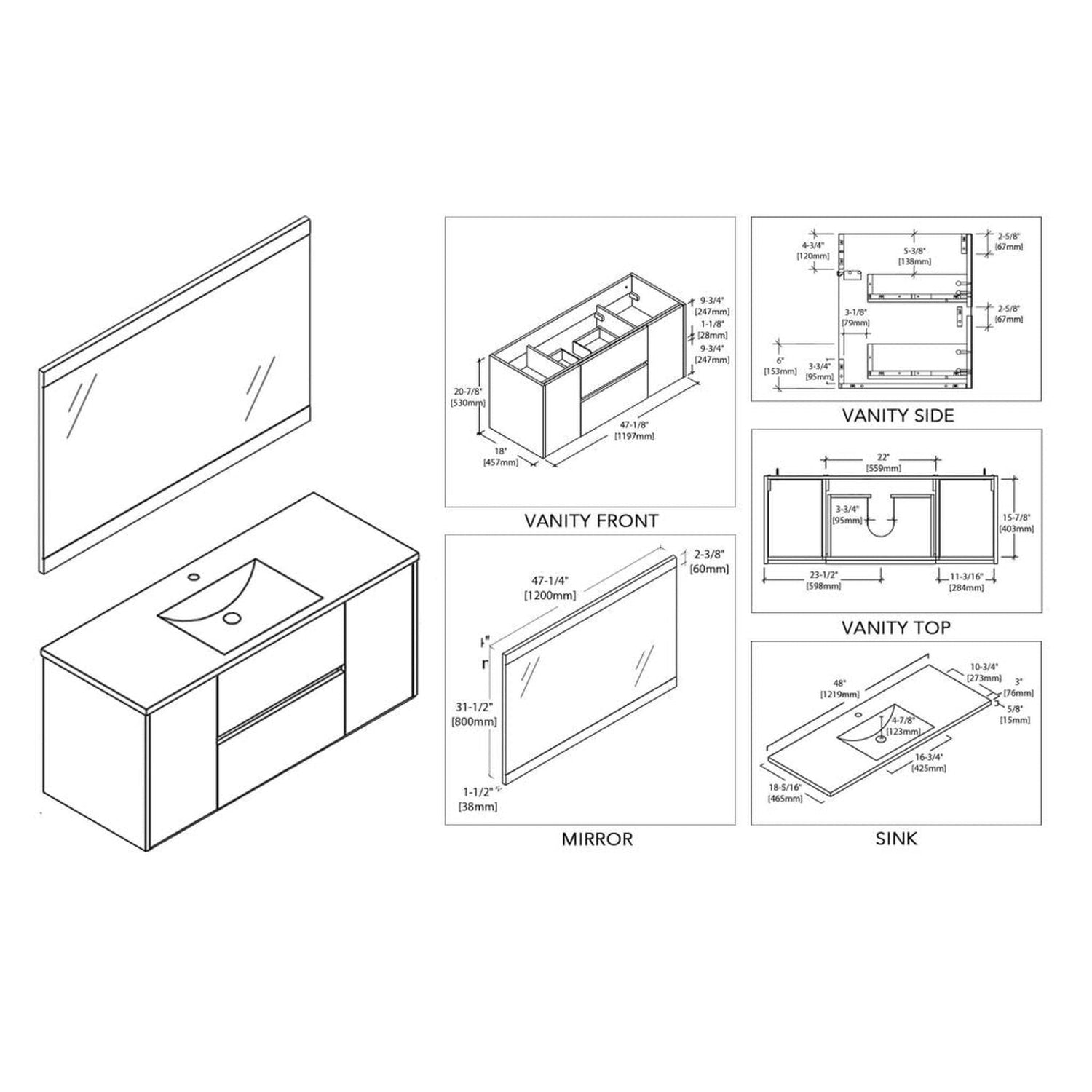Blossom Valencia 48" Single Navy Blue Wall-Mounted Vanity Base Only