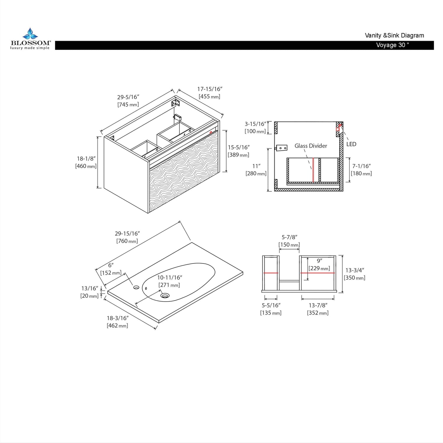 Blossom Voyage 30" Glossy White Vanity With Droplet-Shaped Basin and LED Light