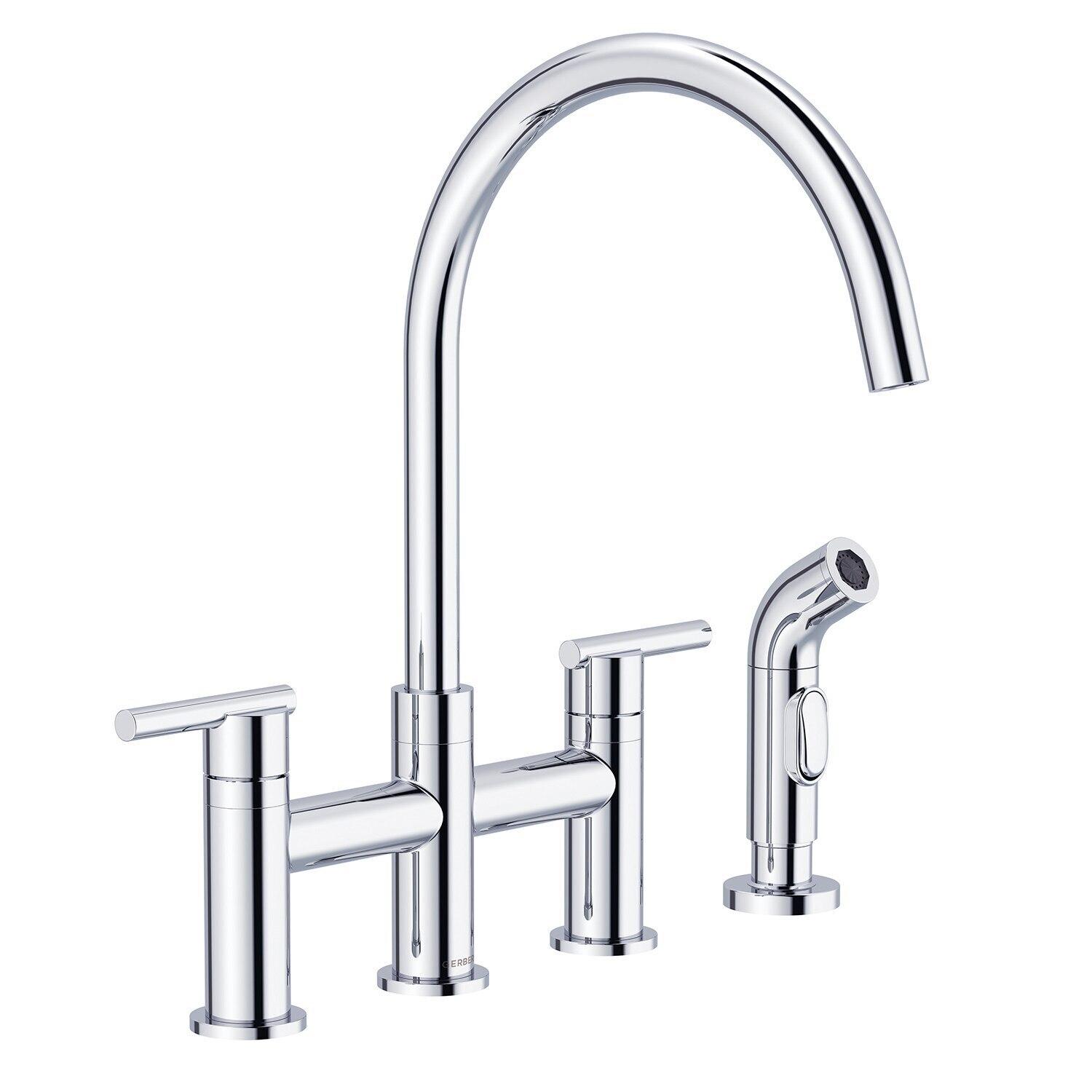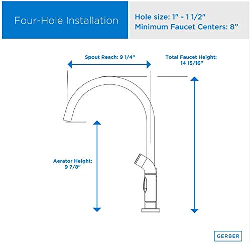 Gerber Plumbing has been manufacturing home improvement plumbing tools from shower heads to faucets to china fixtures since 2001. Not only providing necessities, the products include a variety of decorative faucets and bath accessories. Designed with comfort, durability and style in mind, there is no question that this should be your choice when it comes to modern plumbing. Product Information Product Overview Connection Type: 1/2 -14npsm ConnectionFlow Rate: 1.75gpm Max Aeration/2.2gpm Max Spray @ 60 psiInstallation: 4-Hole InstallationSpray/Stream Function: Matching side spray offers choice between single steady stream and powerful sprayBrand: Gerber Features Cartridge Type: Includes Durable Ceramic Disc Valve for Drip-Free PerformanceSpout Swivel: 360-Degree Swivel SpoutWarranty: Limited lifetime Components Includes: Matching Side Spray