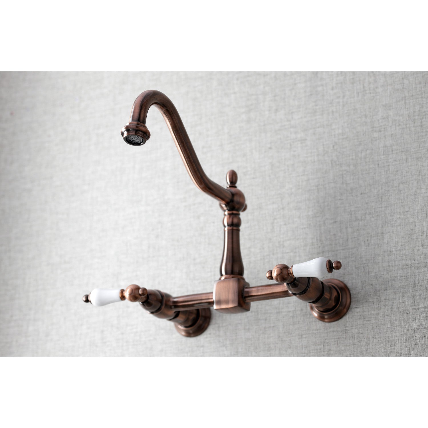 Heritage KS124PLAC Two-Handle 2-Hole Wall Mount Bridge Kitchen Faucet, Antique Copper