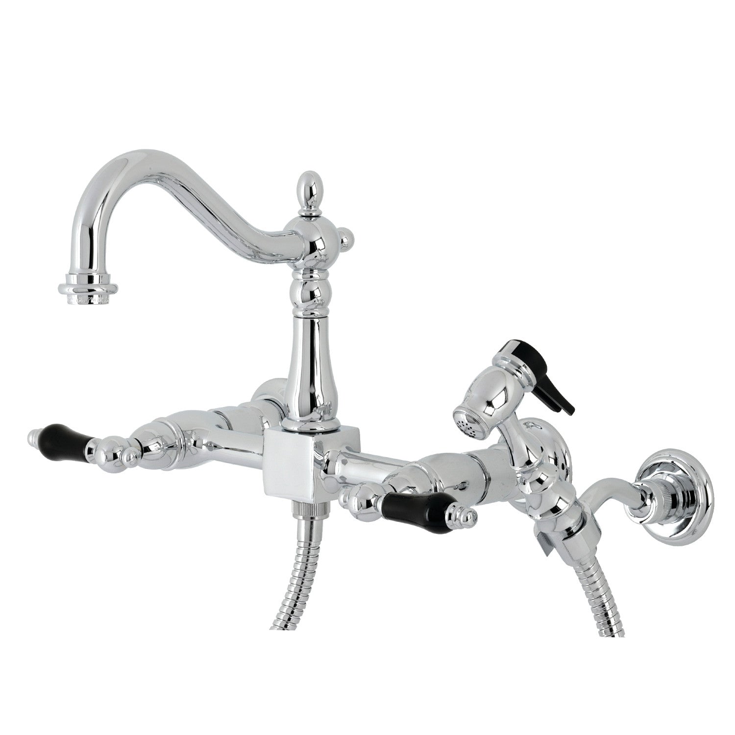Duchess KS1261PKLBS Two-Handle 2-Hole Wall Mount Bridge Kitchen Faucet with Brass Sprayer, Polished Chrome
