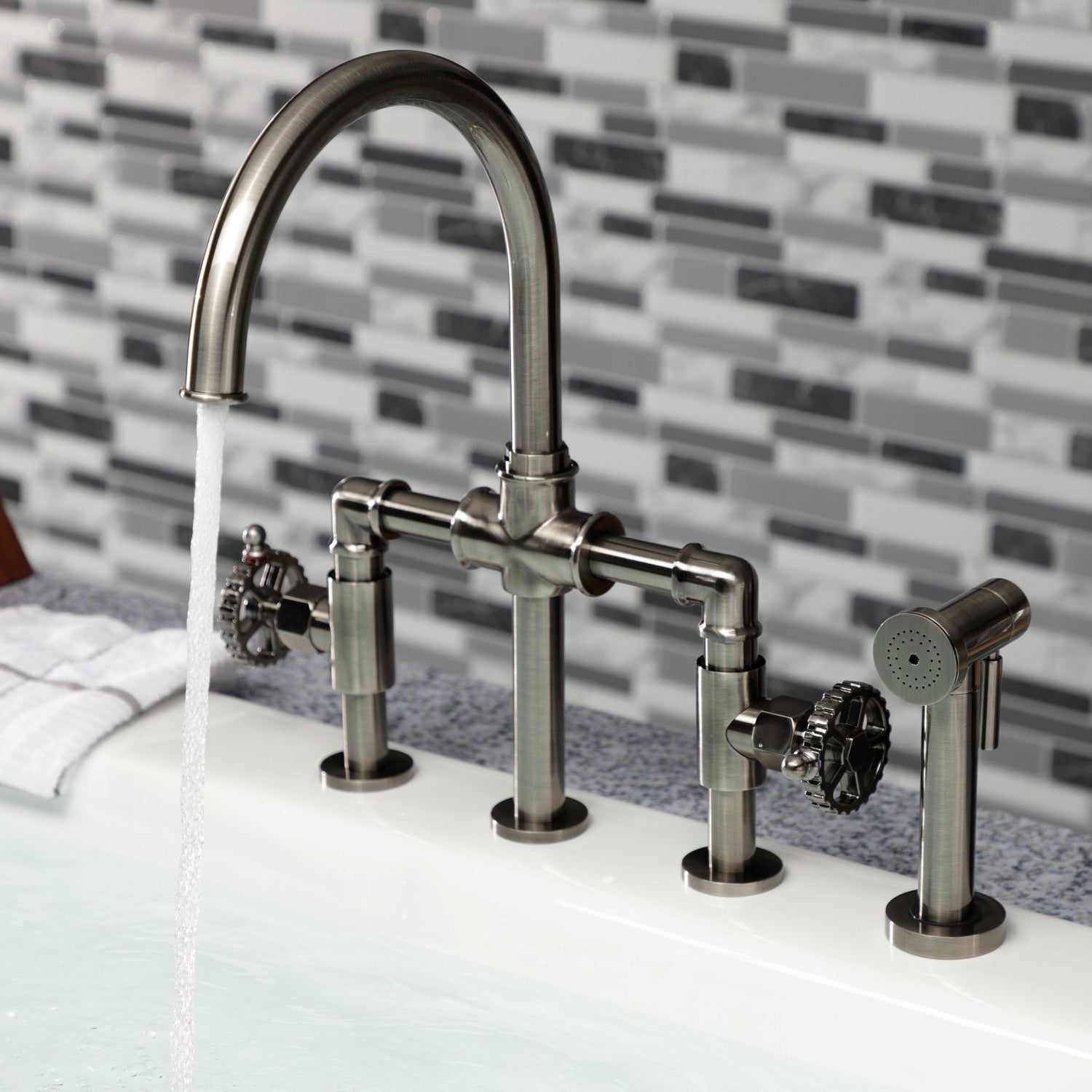 Fuller KS2334CG Two-Handle 4-Hole Deck Mount Bridge Kitchen Faucet with Brass Sprayer, Black Stainless