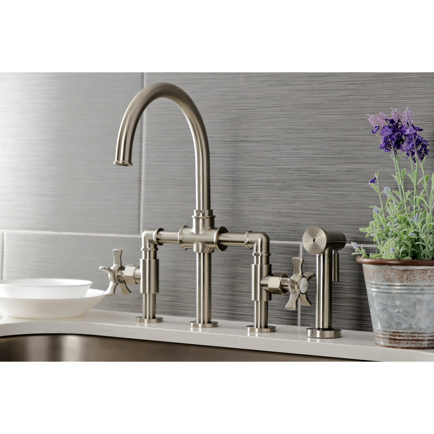 Hamilton KS2338NX Two-Handle 4-Hole Deck Mount Bridge Kitchen Faucet with Brass Sprayer, Brushed Nickel