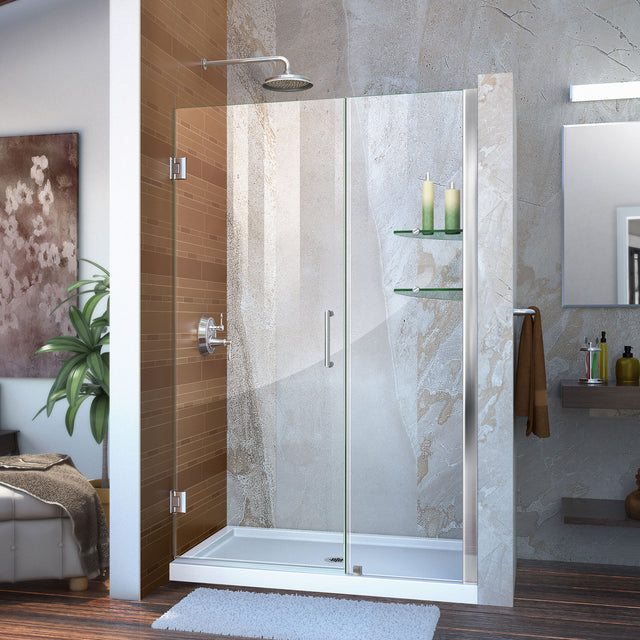 DreamLine Unidoor 48-49 in. W x 72 in. H Frameless Hinged Shower Door with Shelves in Chrome