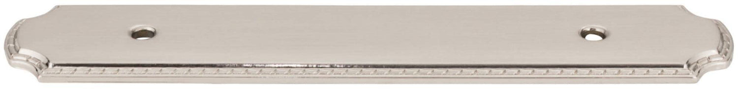 Features: For use with cabinet pulls with a 3-3/4 inch center to center High quality finish resists rust and tarnish through daily use All metal construction for increased durability Coordinates with the Rhodes collection Covered under a limited lifetime Specifications: Center to Center: 3-3/4" Width: 6" Height: 1-1/4" Projection: 1/8" Material: Zinc