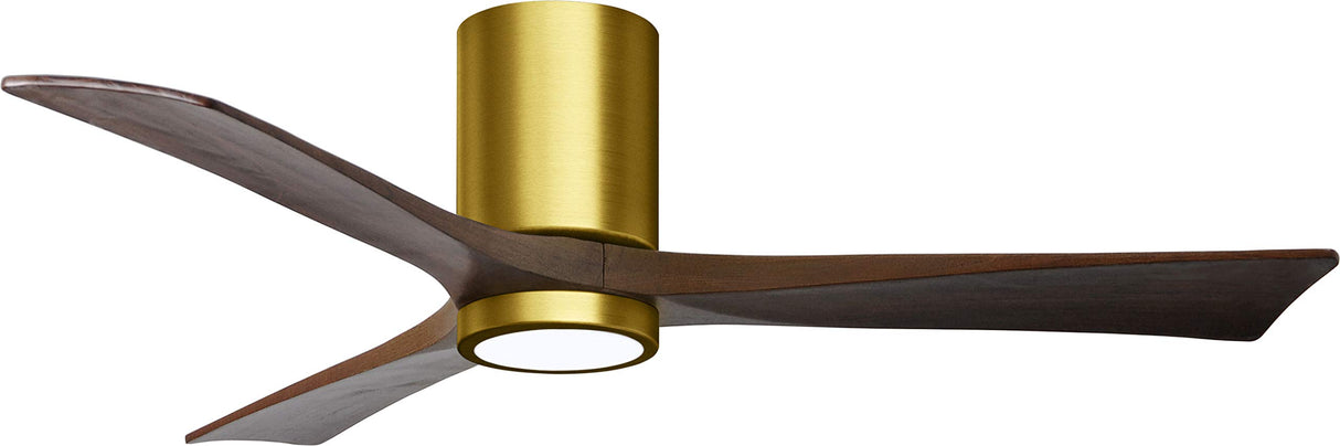 Matthews Fan IR3HLK-BRBR-WA-52 Irene-3HLK three-blade flush mount paddle fan in Brushed Brass finish with 52” solid walnut tone blades and integrated LED light kit.