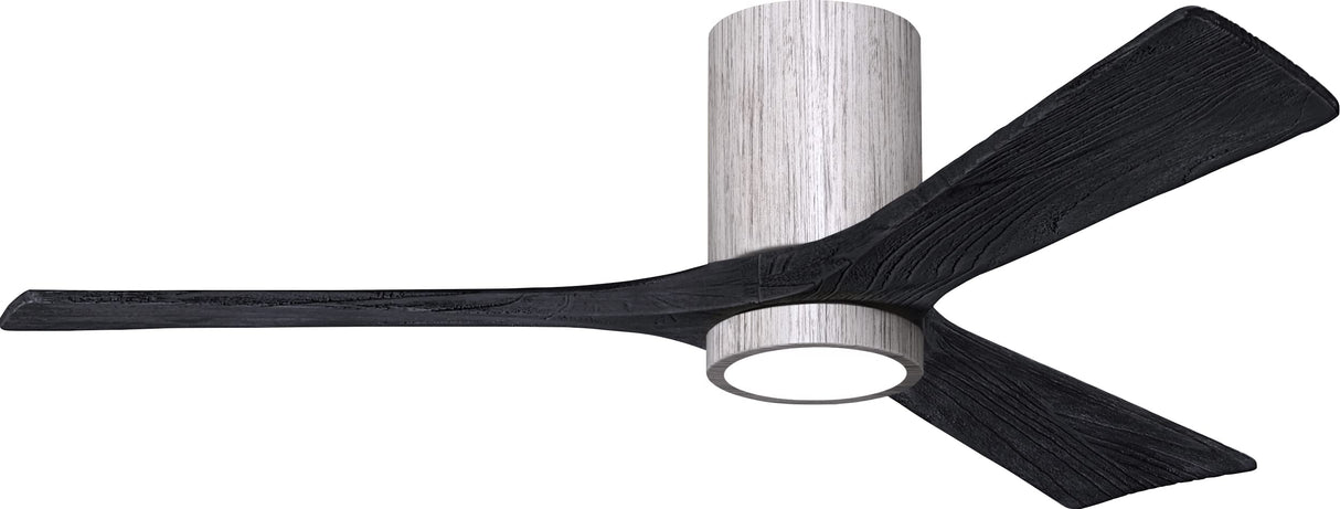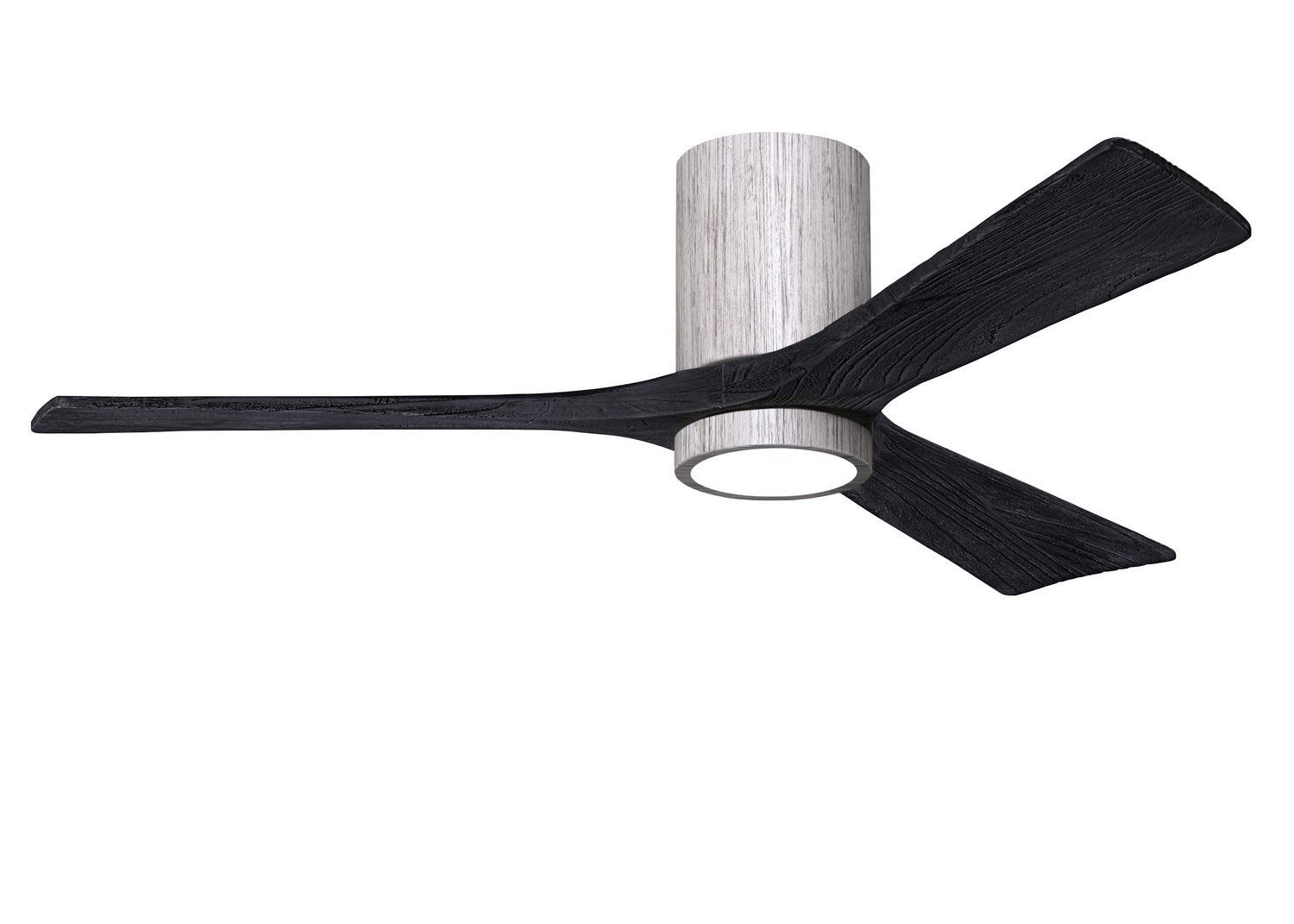 Matthews Fan IR3HLK-BW-BK-52 Irene-3HLK three-blade flush mount paddle fan in Barn Wood finish with 52” solid matte black wood blades and integrated LED light kit.