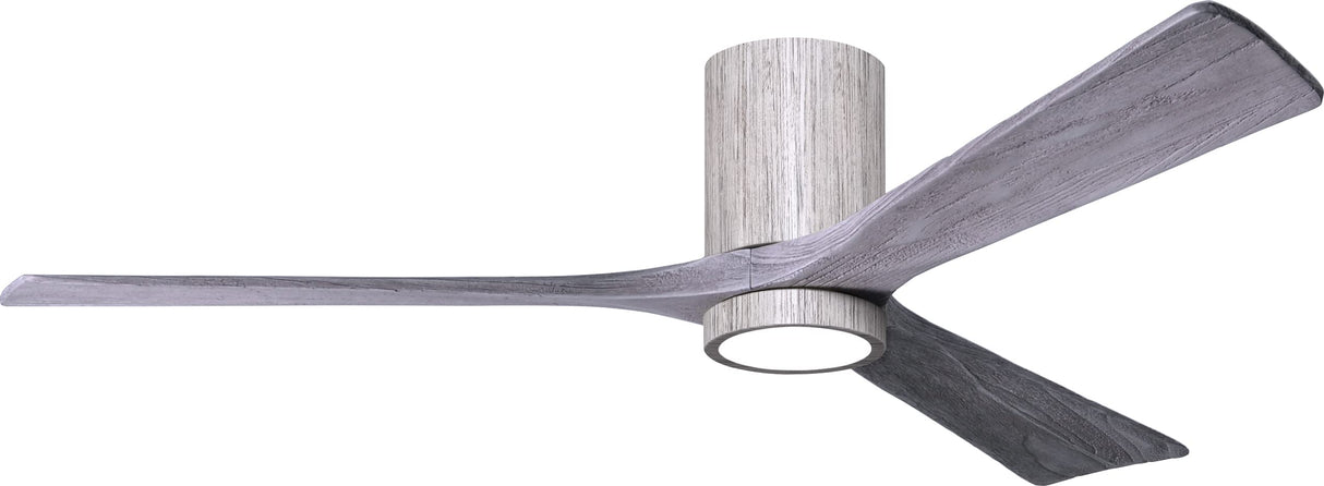 Matthews Fan IR3HLK-BW-BW-60 Irene-3HLK three-blade flush mount paddle fan in Barn Wood finish with 60” solid barn wood tone blades and integrated LED light kit.