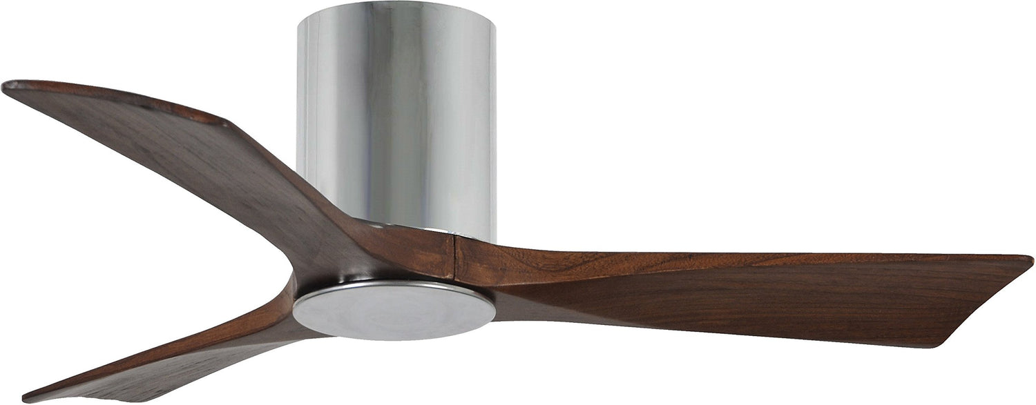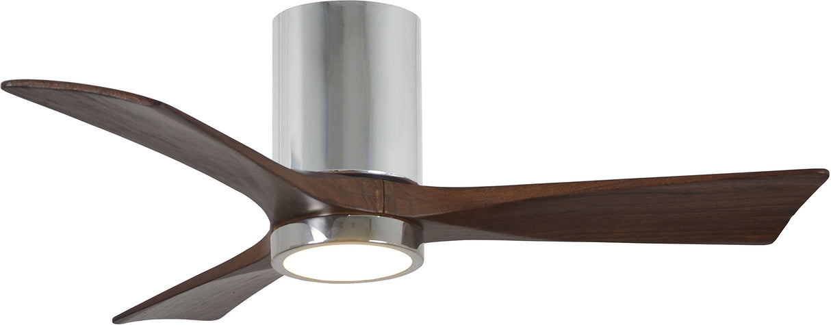 Matthews Fan IR3HLK-CR-WA-42 Irene-3HLK three-blade flush mount paddle fan in Polished Chrome finish with 42” solid walnut tone blades and integrated LED light kit.