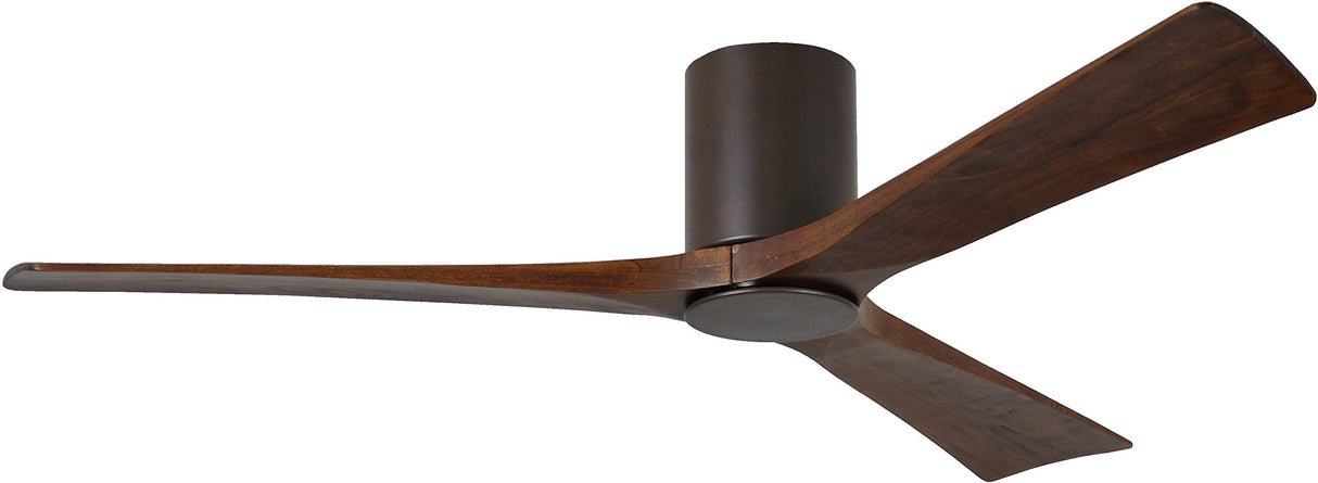 Matthews Fan IR3HLK-TB-WA-60 Irene-3HLK three-blade flush mount paddle fan in Textured Bronze finish with 60” solid walnut tone blades and integrated LED light kit.