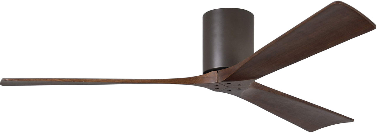 Matthews Fan IR3H-TB-WA-60 Irene-3H three-blade flush mount paddle fan in Textured Bronze finish with 60” solid walnut tone blades.