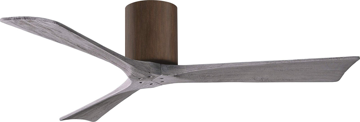 Matthews Fan IR3H-WN-BW-52 Irene-3H three-blade flush mount paddle fan in Walnut finish with 52” solid barn wood tone blades.