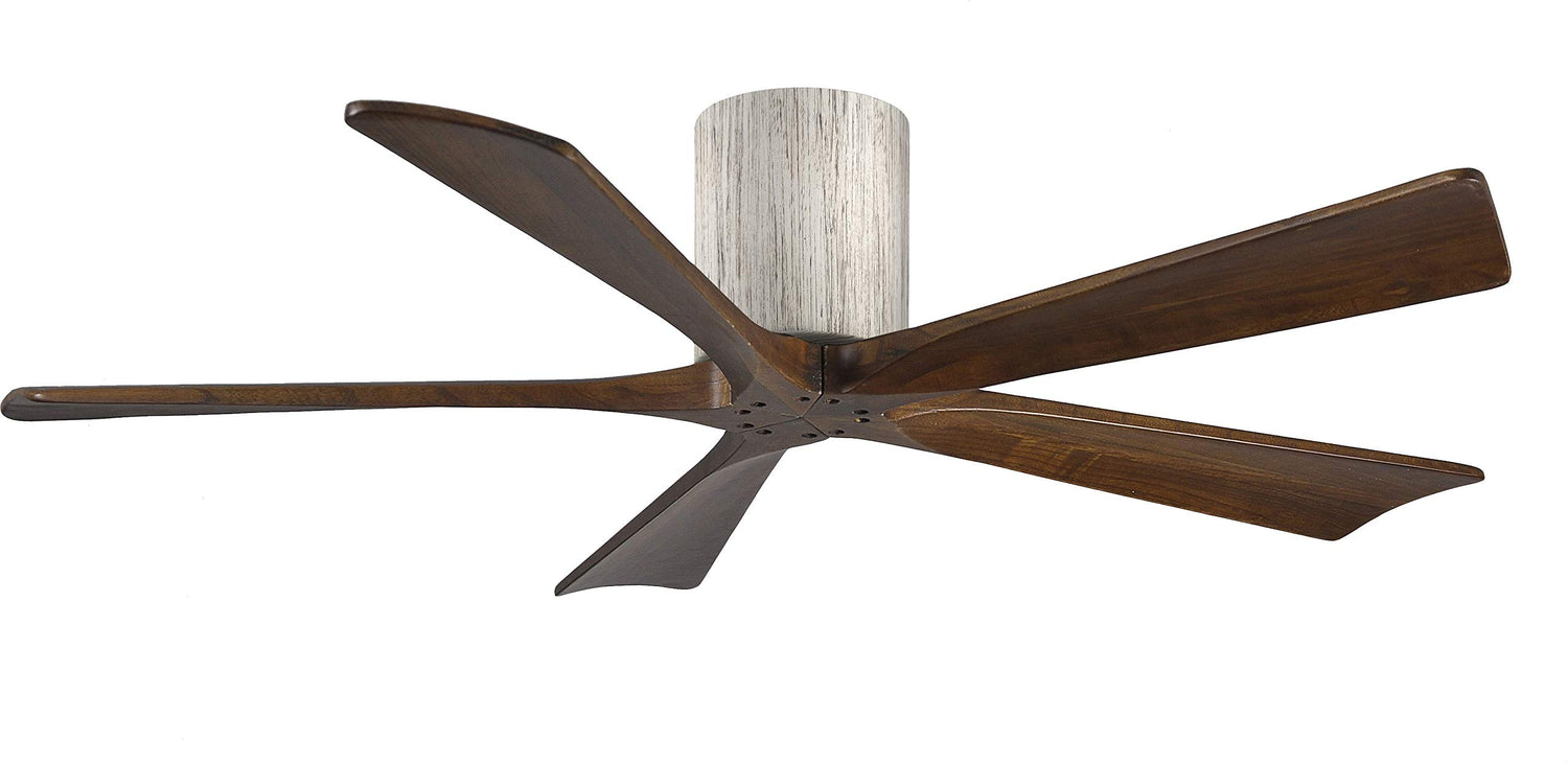 Matthews Fan IR5H-BW-WA-52 Irene-5H five-blade flush mount paddle fan in Barn Wood finish with 52” solid walnut tone blades.