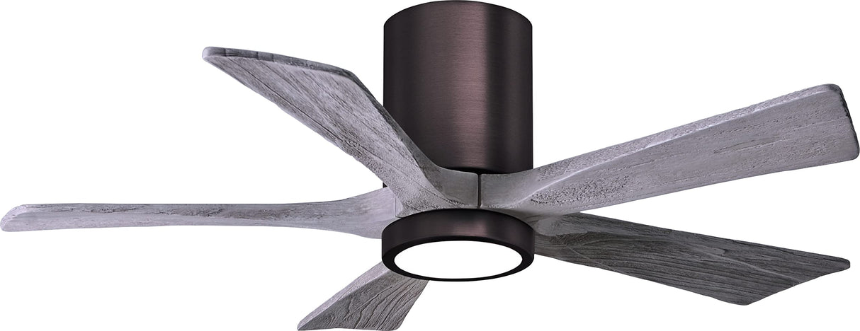 Matthews Fan IR5HLK-BB-BW-42 IR5HLK five-blade flush mount paddle fan in Brushed Bronze finish with 42” solid barn wood tone blades and integrated LED light kit.