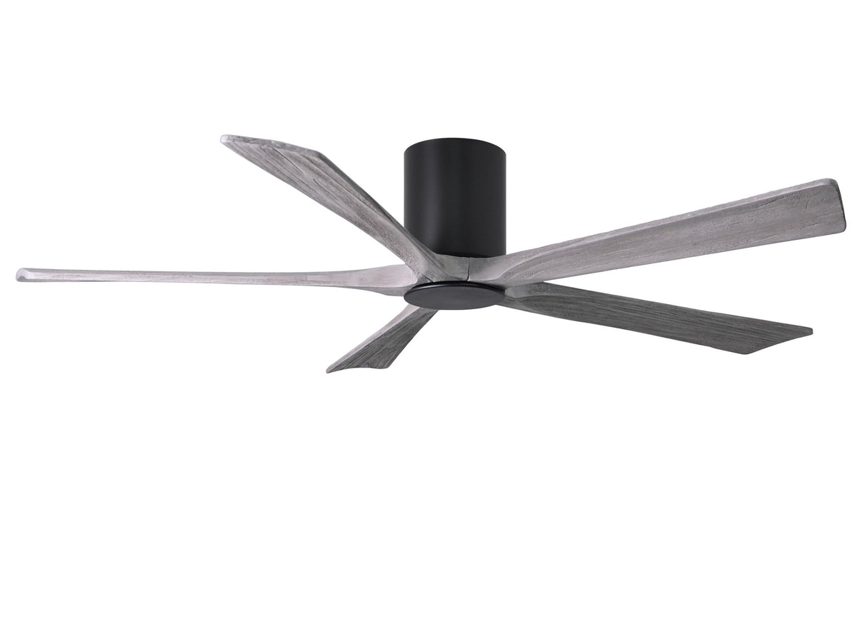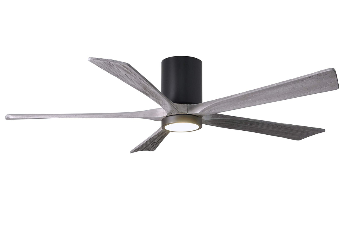 Matthews Fan IR5HLK-BK-BW-60 IR5HLK five-blade flush mount paddle fan in Matte Black finish with 60” solid barn wood tone blades and integrated LED light kit.