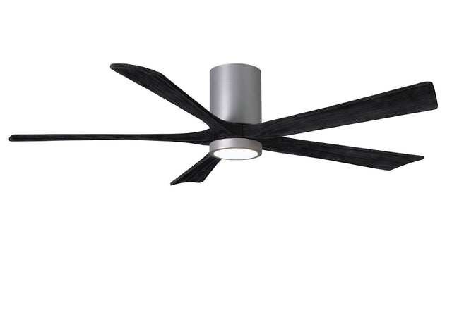 Matthews Fan IR5HLK-BN-BK-60 IR5HLK five-blade flush mount paddle fan in Brushed Nickel finish with 60” solid matte black wood blades and integrated LED light kit.