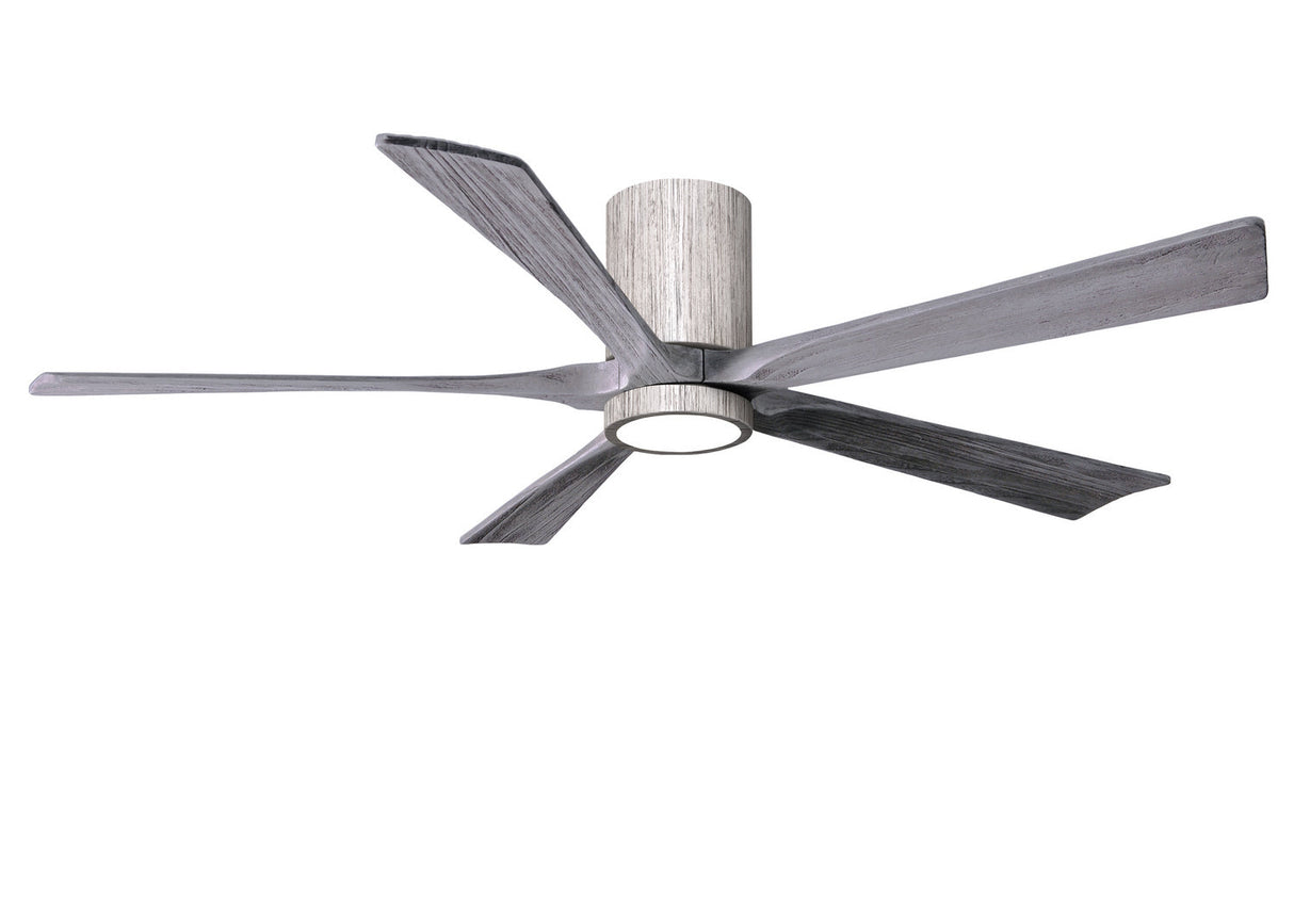 Matthews Fan IR5HLK-BW-BW-60 IR5HLK five-blade flush mount paddle fan in Barn Wood finish with 60” solid barn wood tone blades and integrated LED light kit.