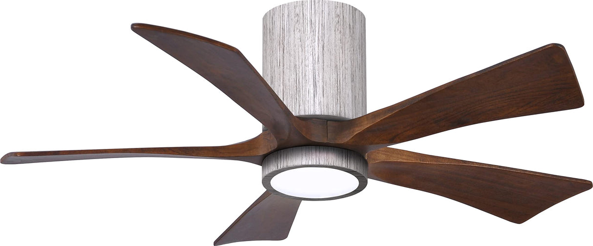 Matthews Fan IR5HLK-BW-WA-42 IR5HLK five-blade flush mount paddle fan in Barn Wood finish with 42” solid walnut tone blades and integrated LED light kit.