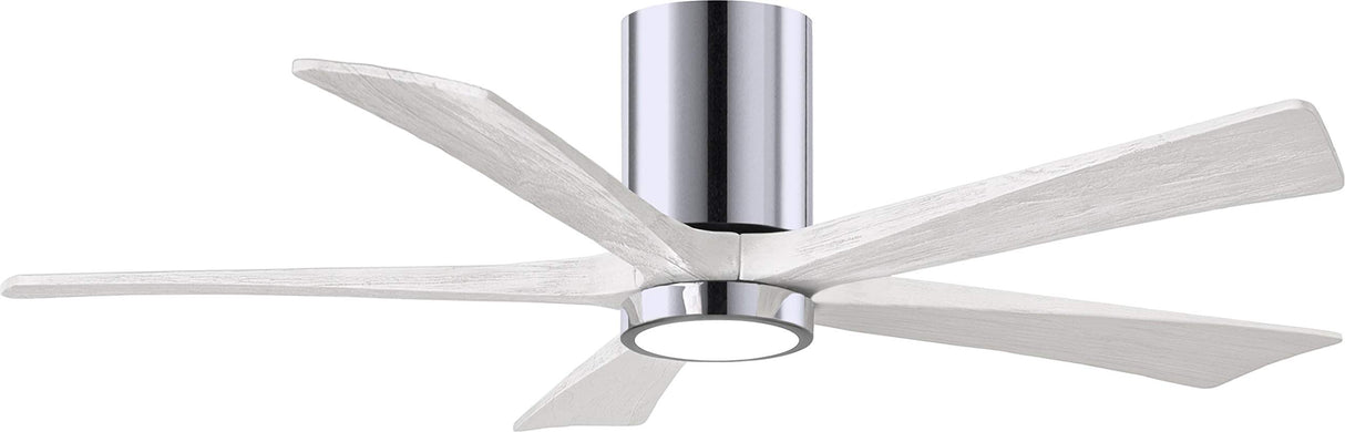 Matthews Fan IR5HLK-CR-MWH-52 IR5HLK five-blade flush mount paddle fan in Polished Chrome finish with 52” solid matte white wood blades and integrated LED light kit.