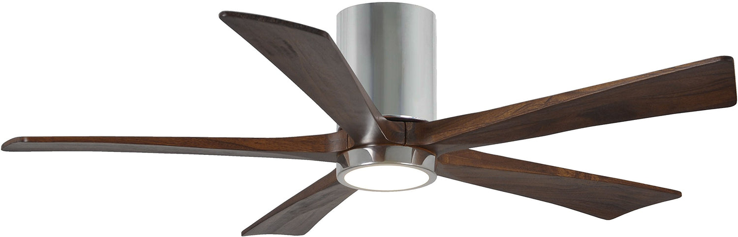 Matthews Fan IR5HLK-CR-WA-52 IR5HLK five-blade flush mount paddle fan in Polished Chrome finish with 52” solid walnut tone blades and integrated LED light kit.