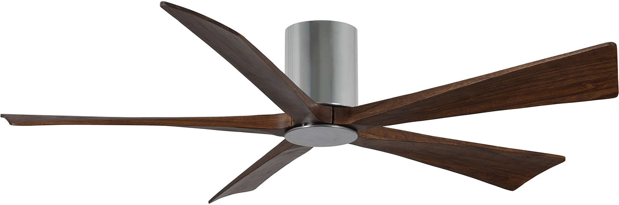 Matthews Fan IR5HLK-CR-WA-60 IR5HLK five-blade flush mount paddle fan in Polished Chrome finish with 60” solid walnut tone blades and integrated LED light kit.