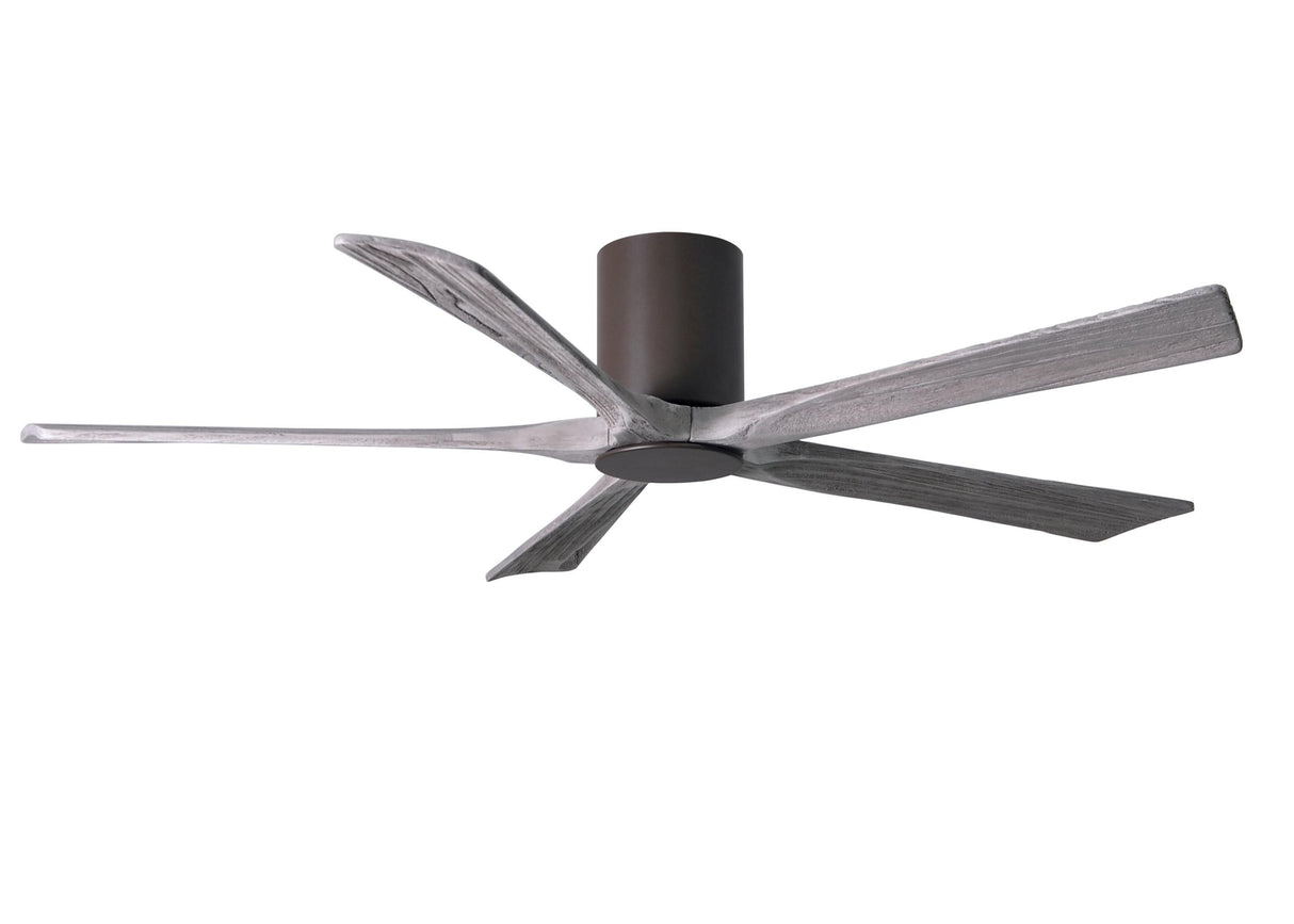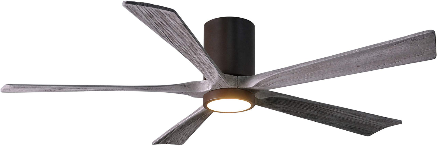 Matthews Fan IR5HLK-TB-BW-60 IR5HLK five-blade flush mount paddle fan in Textured Bronze finish with 60” solid barn wood tone blades and integrated LED light kit.