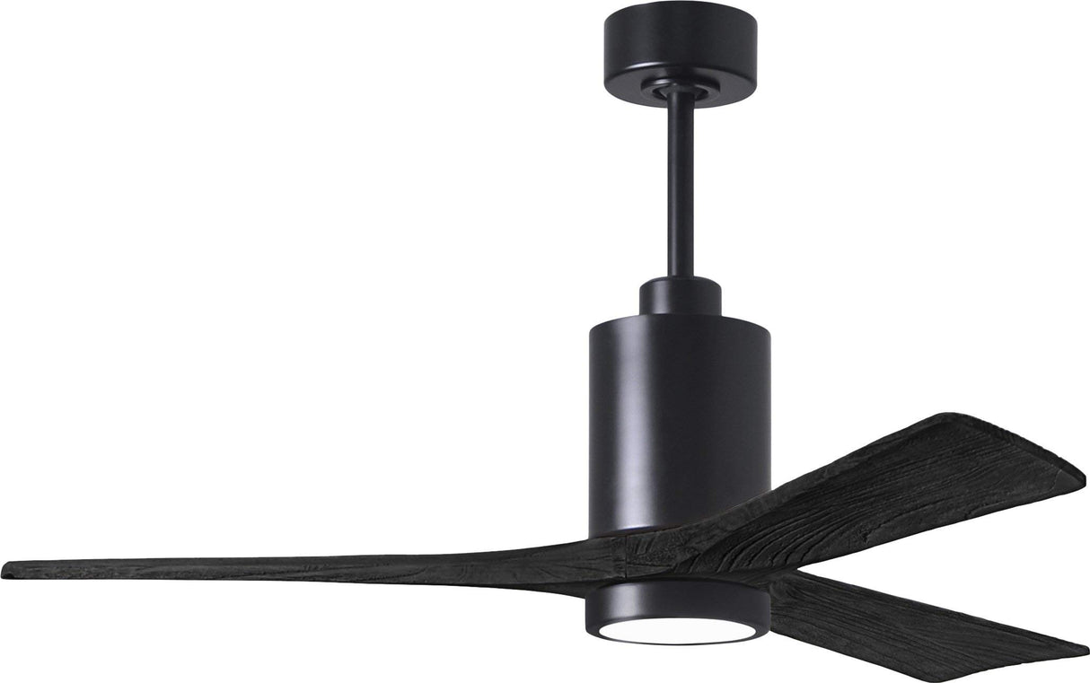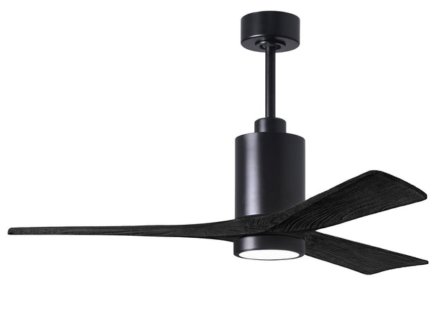 Matthews Fan PA3-BK-BK-52 Patricia-3 three-blade ceiling fan in Matte Black finish with 52” solid matte black wood blades and dimmable LED light kit